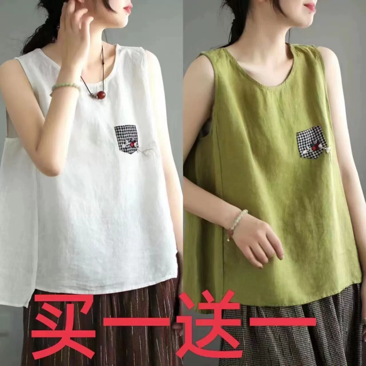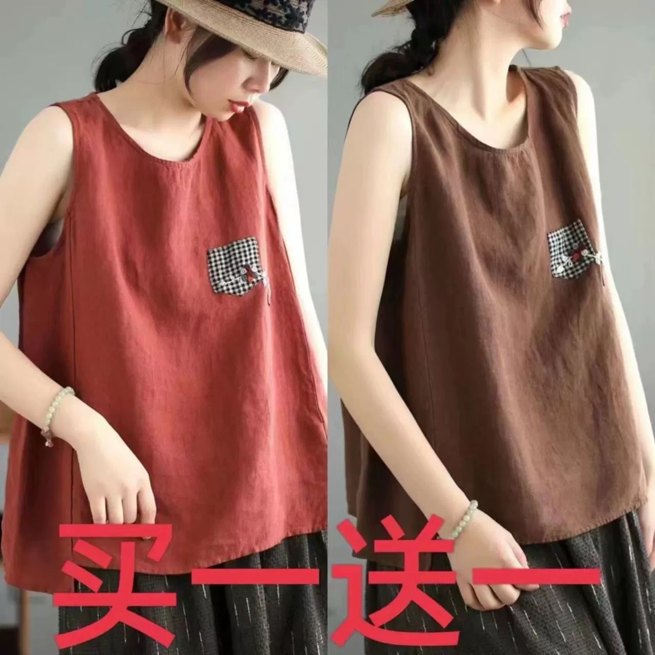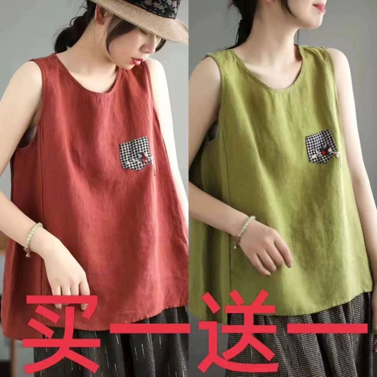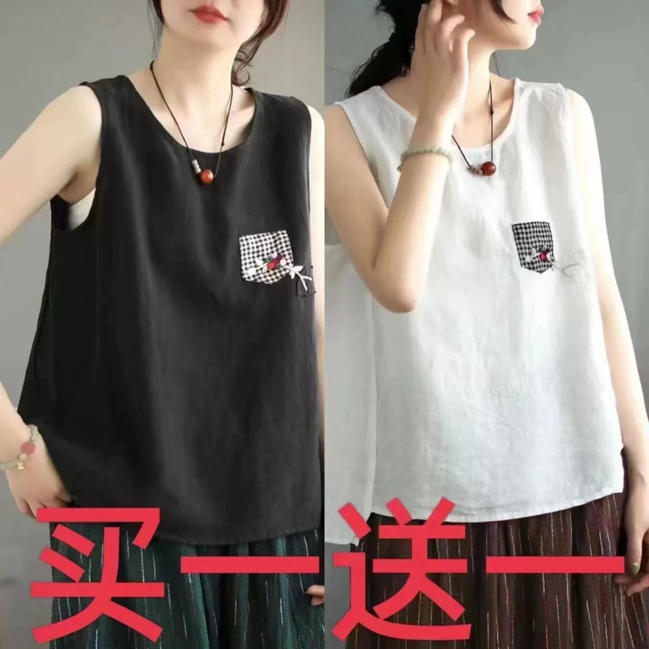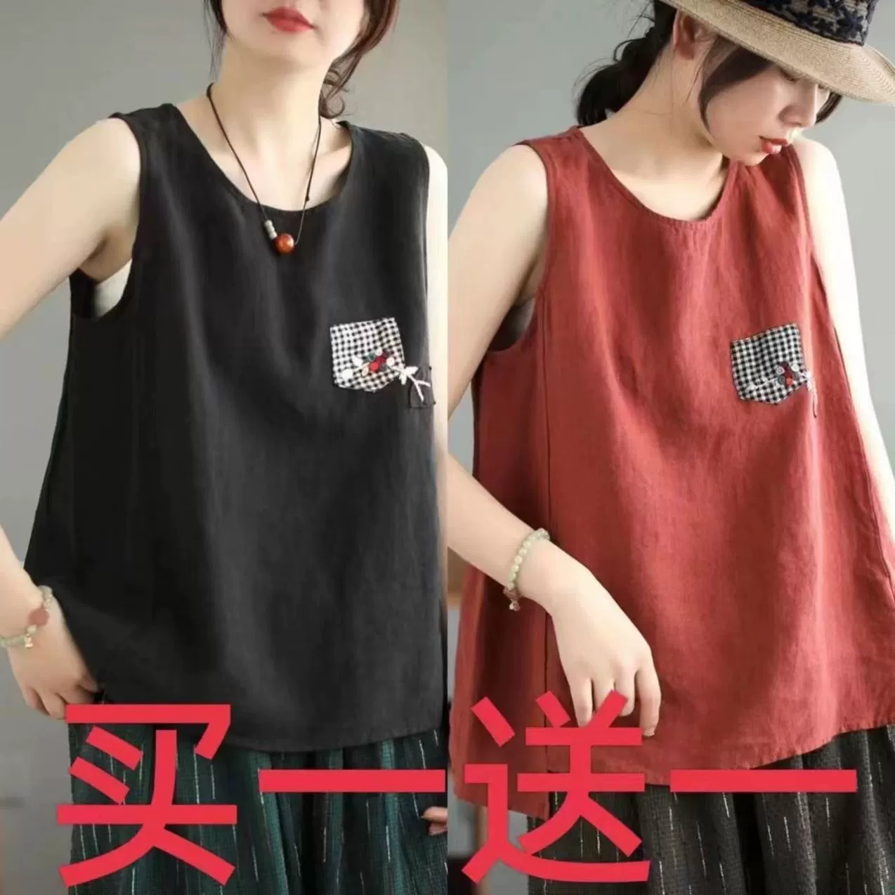 | nameOriginal | Pure cotton and linen sleeveless t-shirt large size loose embroidered vest |