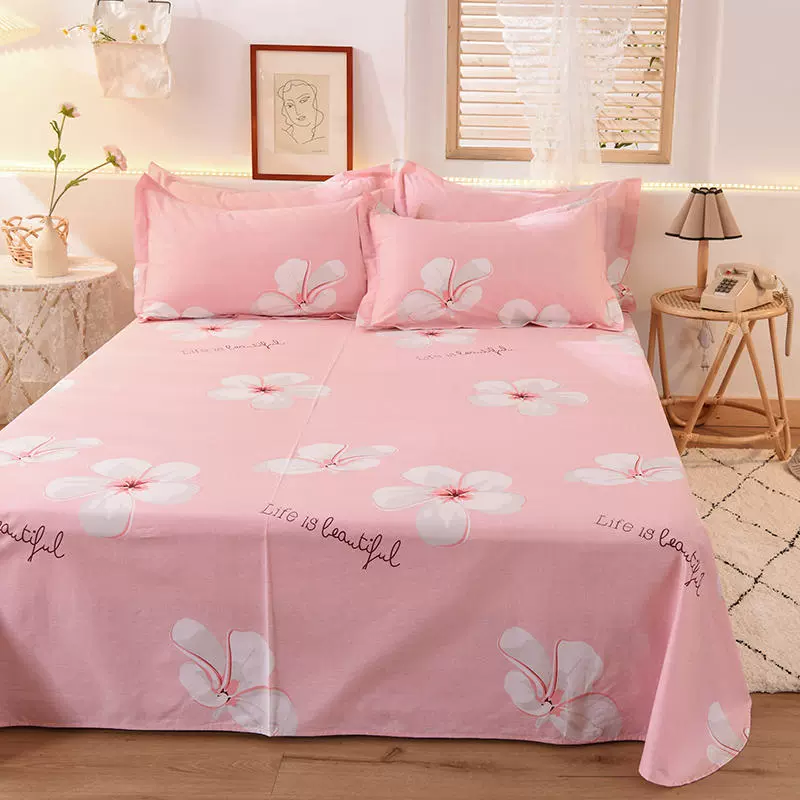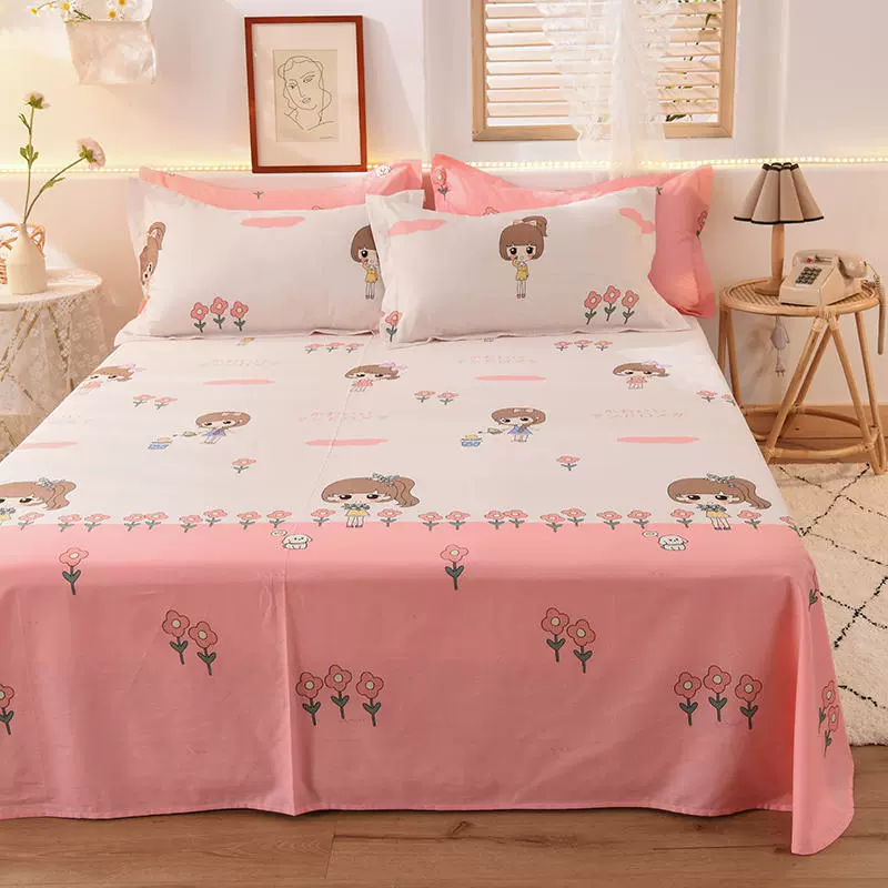 | nameOriginal | Pure cotton bed sheet single piece 100 cotton quilt cover bedspread dormitory single 150x200x230 pillowcase three-piece set pink |
