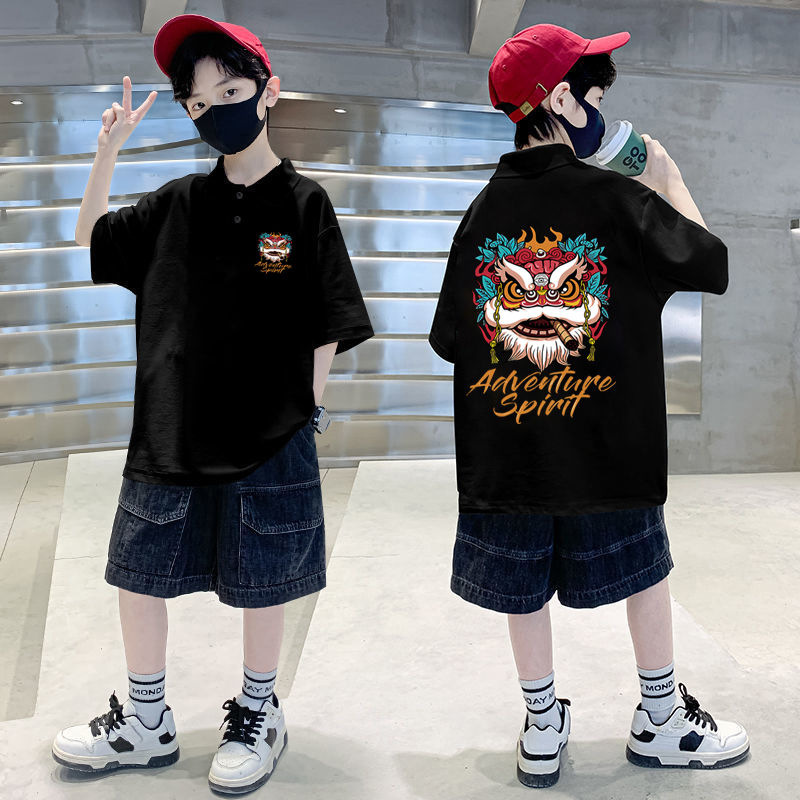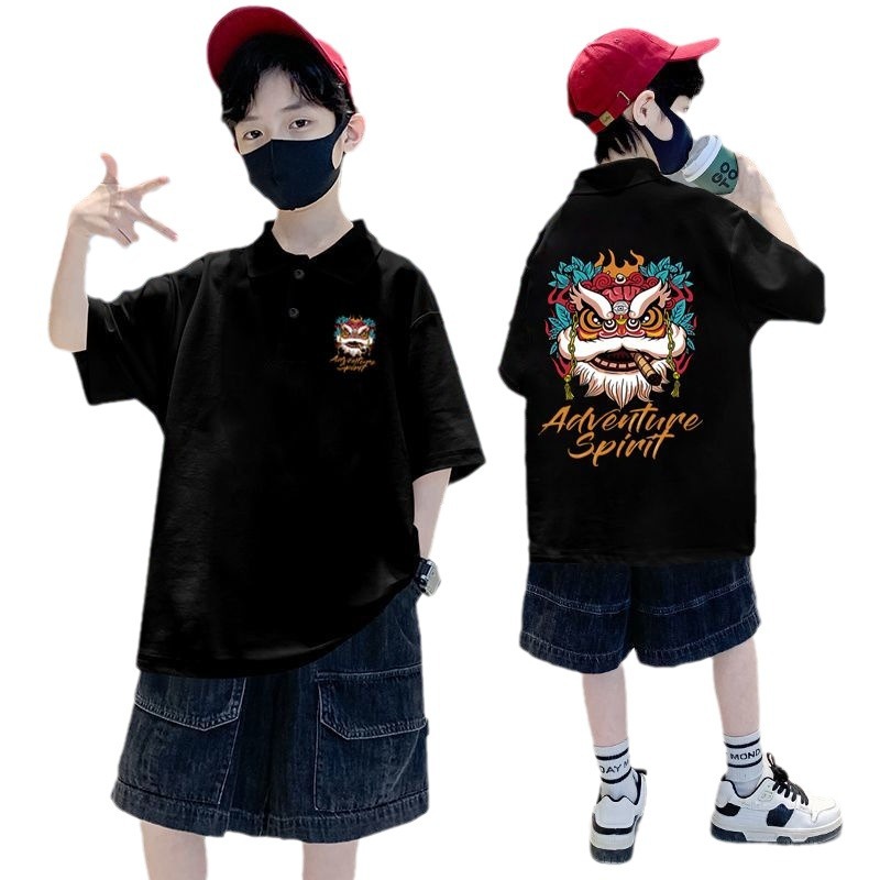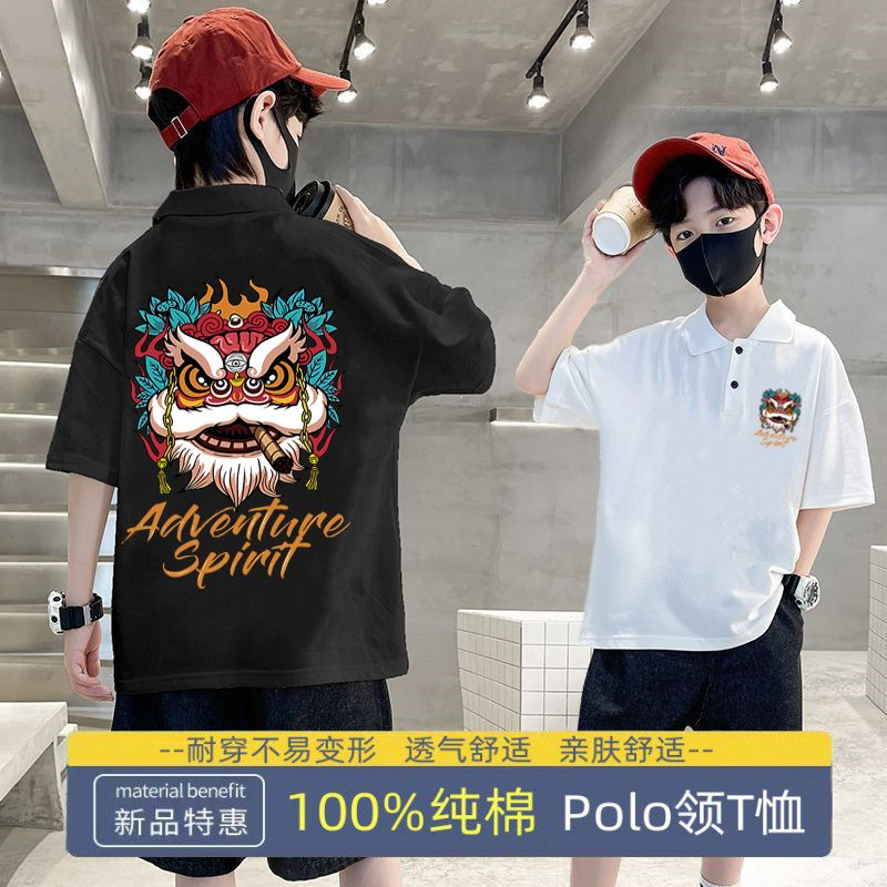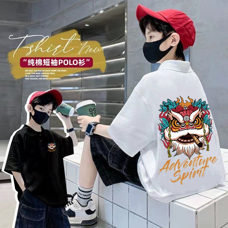 | nameOriginal | Pure Cotton boy POLO collar 2024 new summer loose all-match top clothes medium and big children handsome national fashion Lion |
