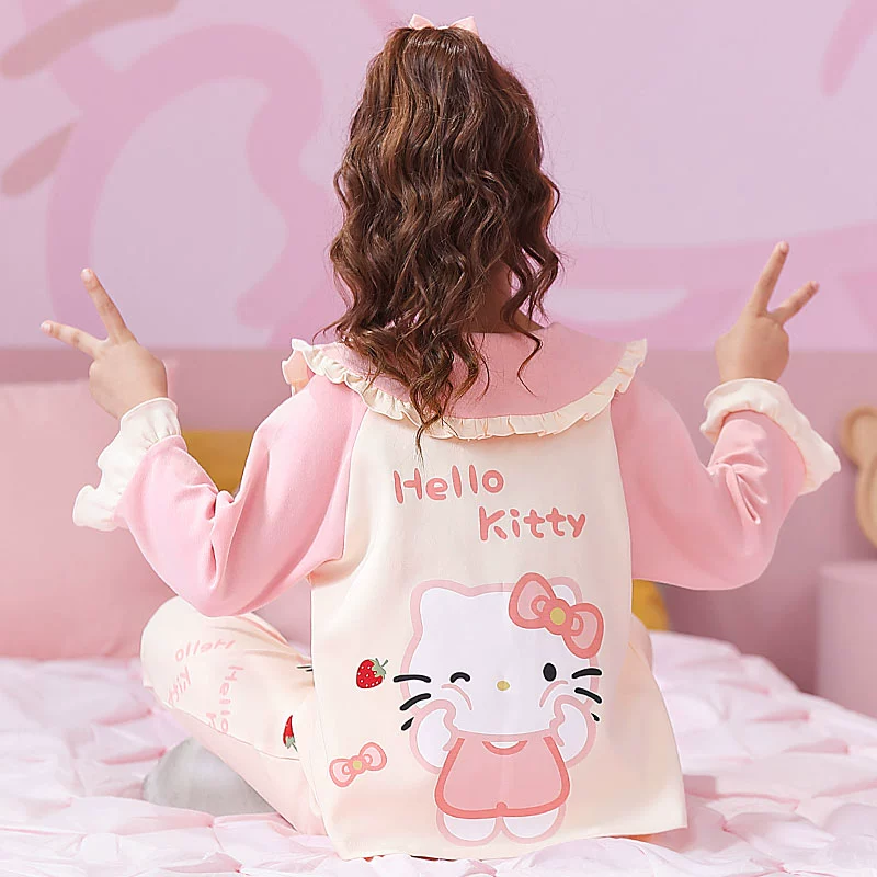 | nameOriginal | Pure cotton cartoon KT cat spring and autumn doll collar pajamas |