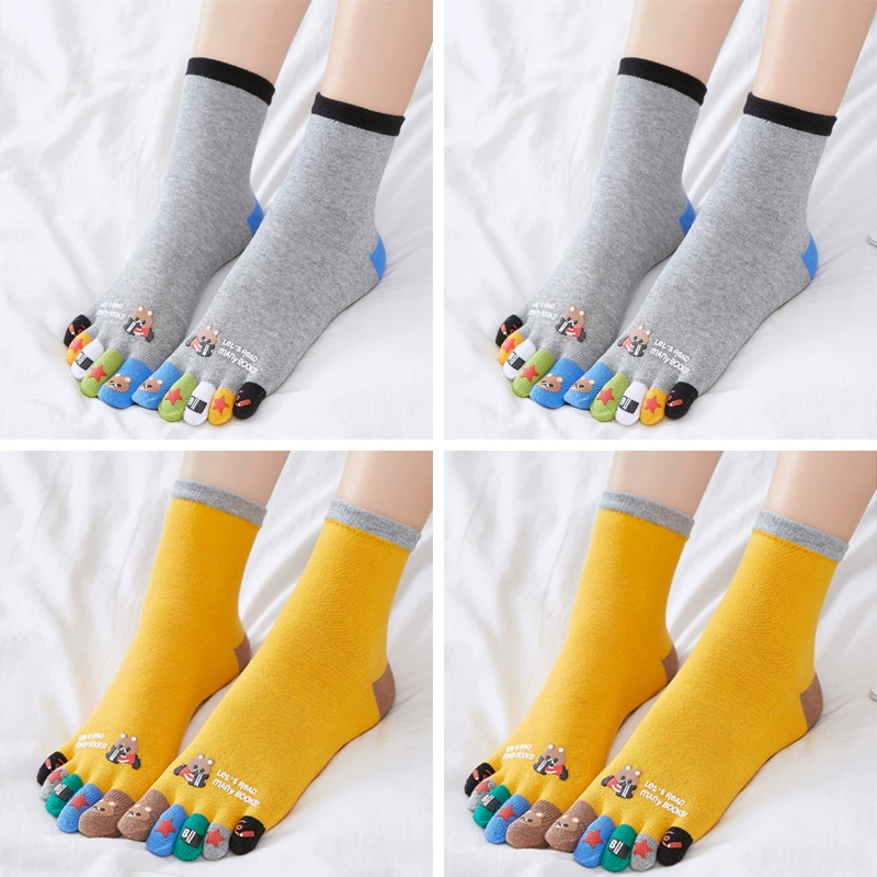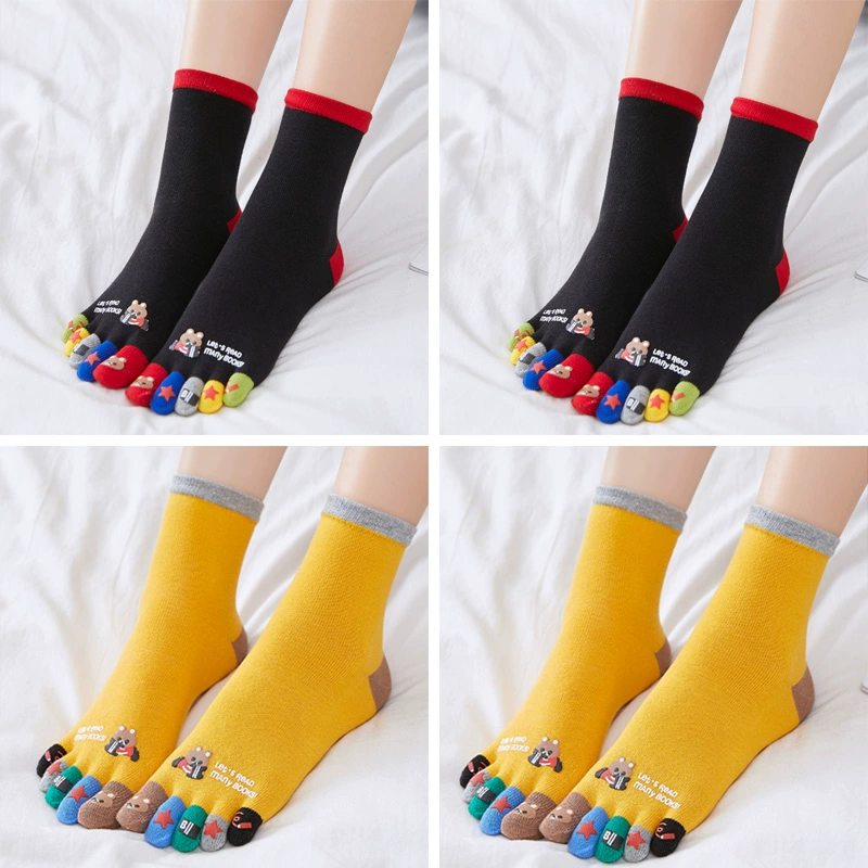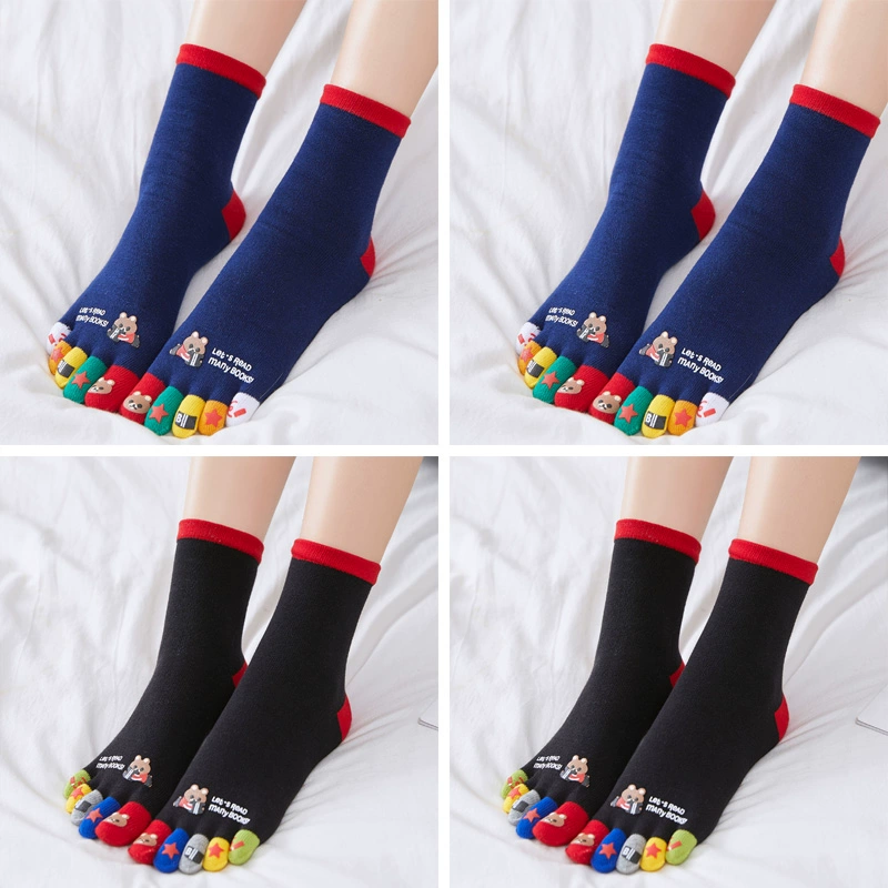 Men and women’s pure cotton medium-thick toe five-finger socks
