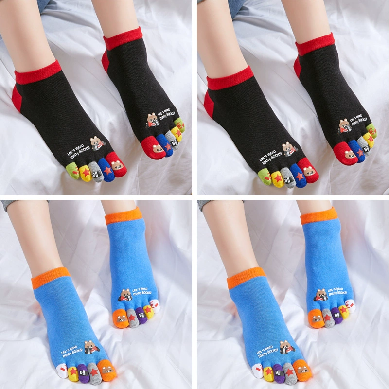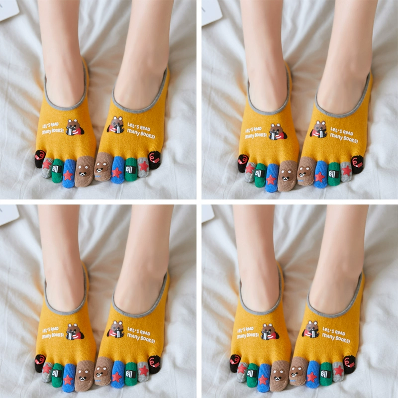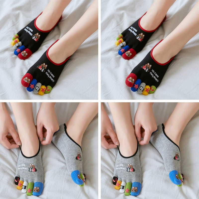 Pure cotton cartoon large size split toe invisible five finger socks