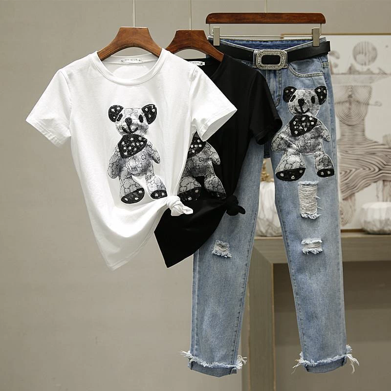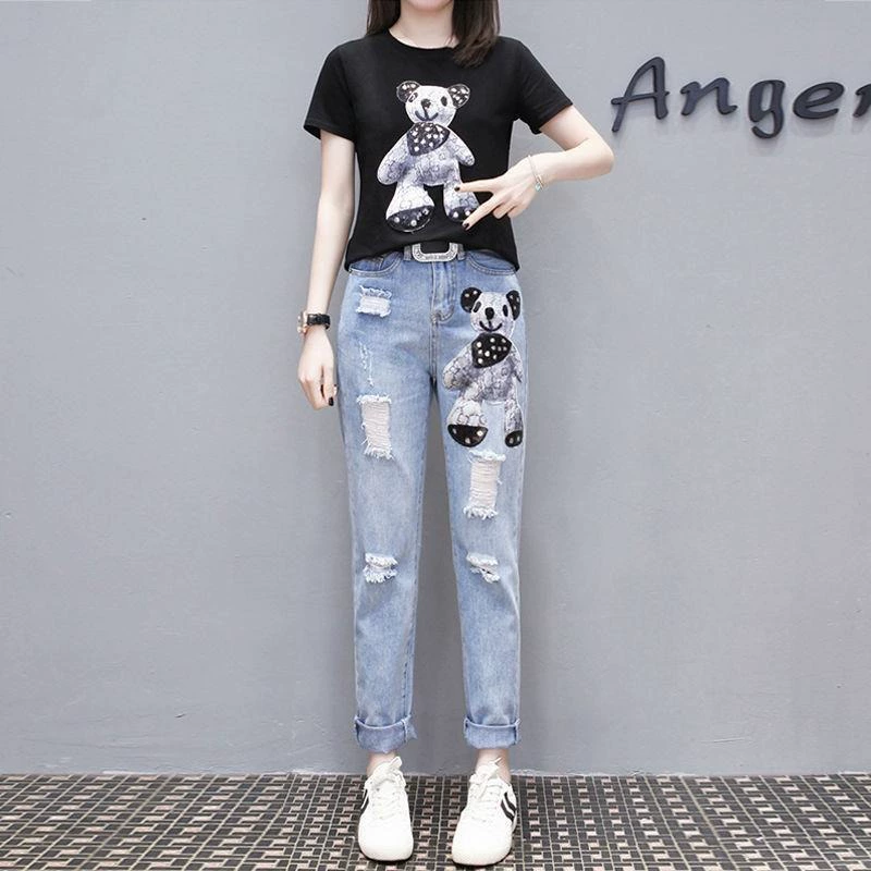 | nameOriginal | Pure cotton cartoon ripped jeans slim fit fashion suit |