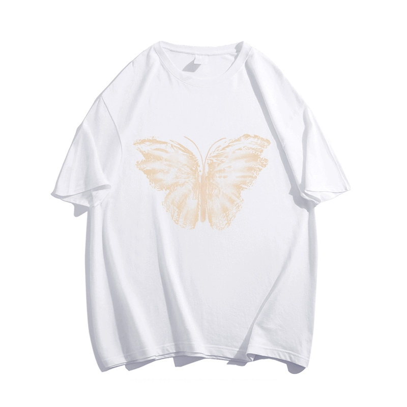 Cotton design T -shirt female butterfly printed large size short sleeve oversize American retro couple top tide ins