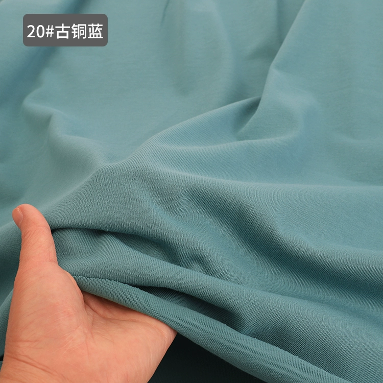 Pure cotton double strand double yarn heavy thin T-shirt T-shirt fabric solid color sweat-absorbent breathable short-sleeved knitted fabric