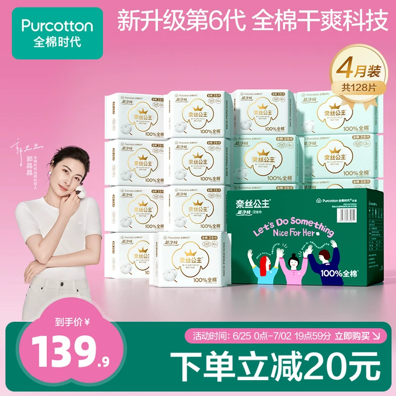 | nameOriginal | Pure cotton era Princess Ness pure cotton sanitary napkin ultra-thin aunt napkin April pack 128 pieces full box stocking |