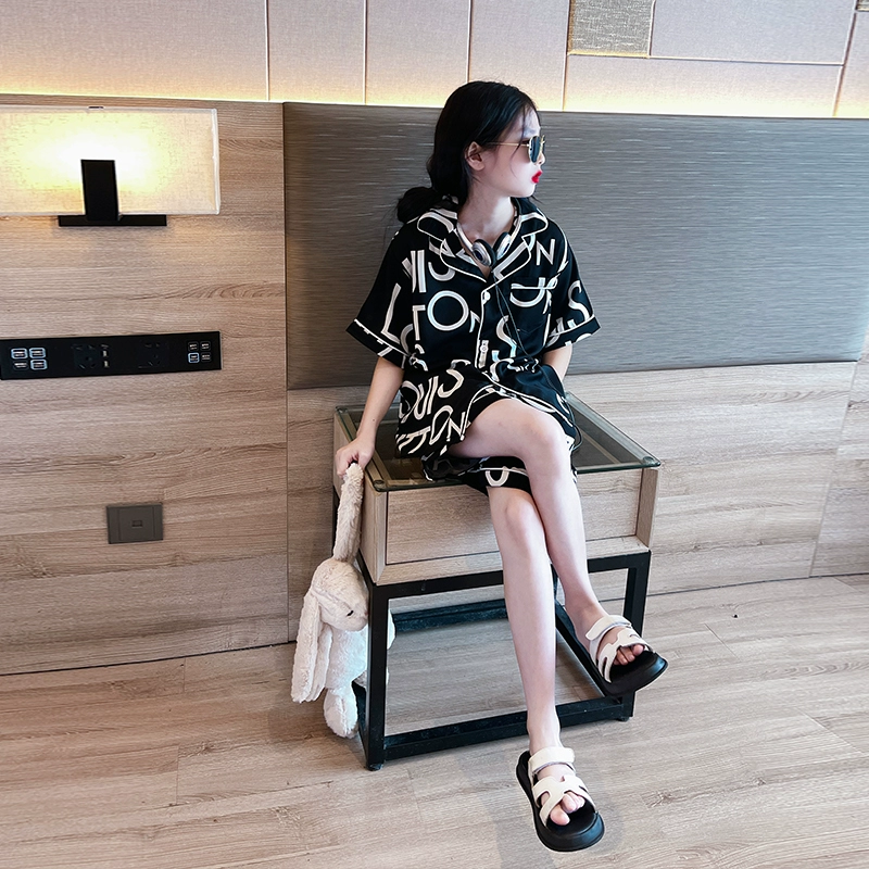 Pure cotton girls short-sleeved air-conditioning suit summer cardigan pajamas