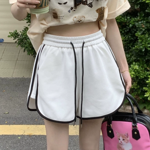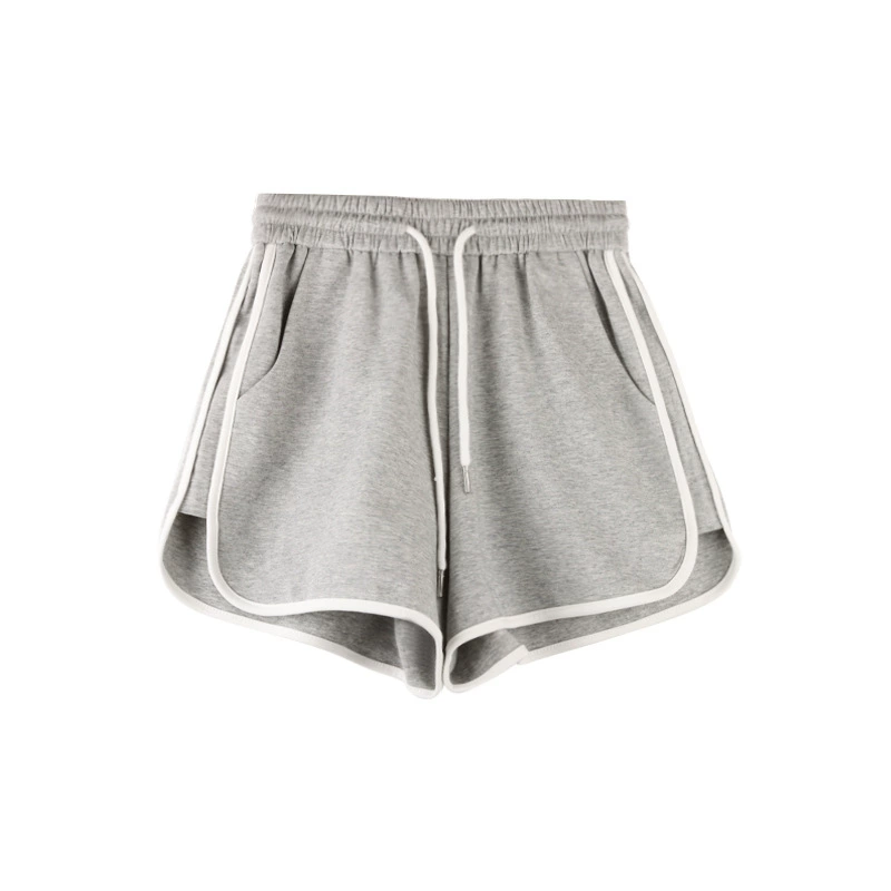 Pure cotton gray retro high waist a line casual shorts