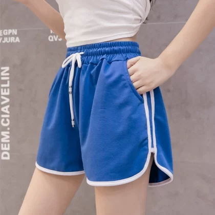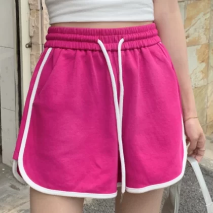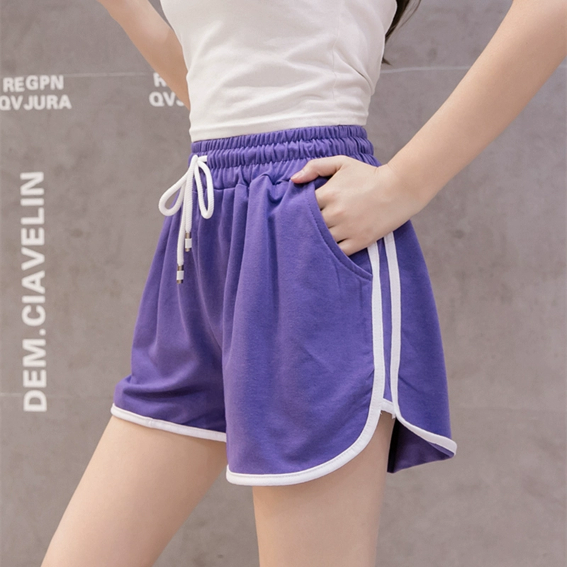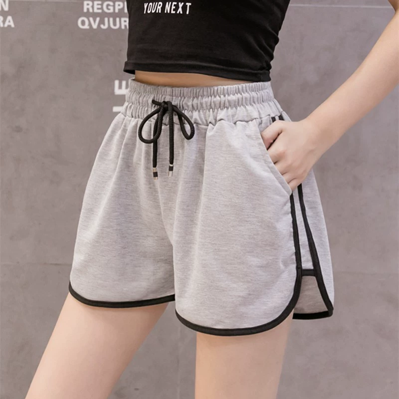 Pure cotton gray retro high waist a line casual shorts