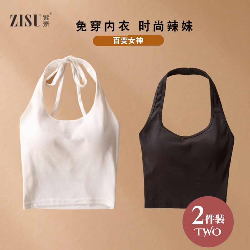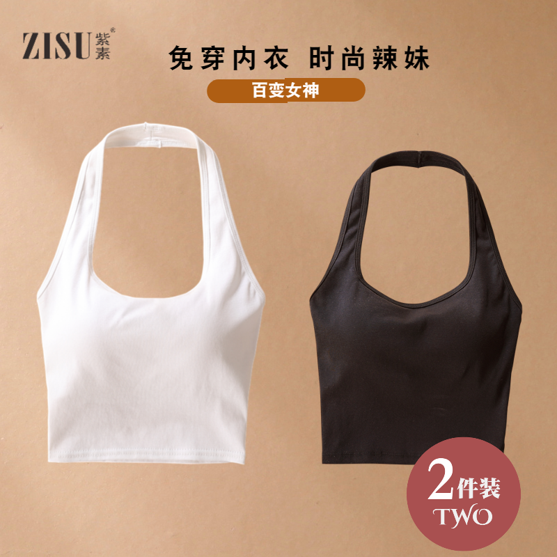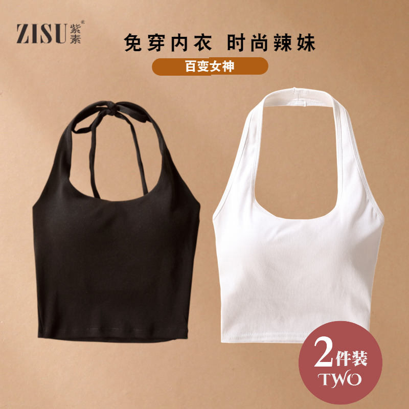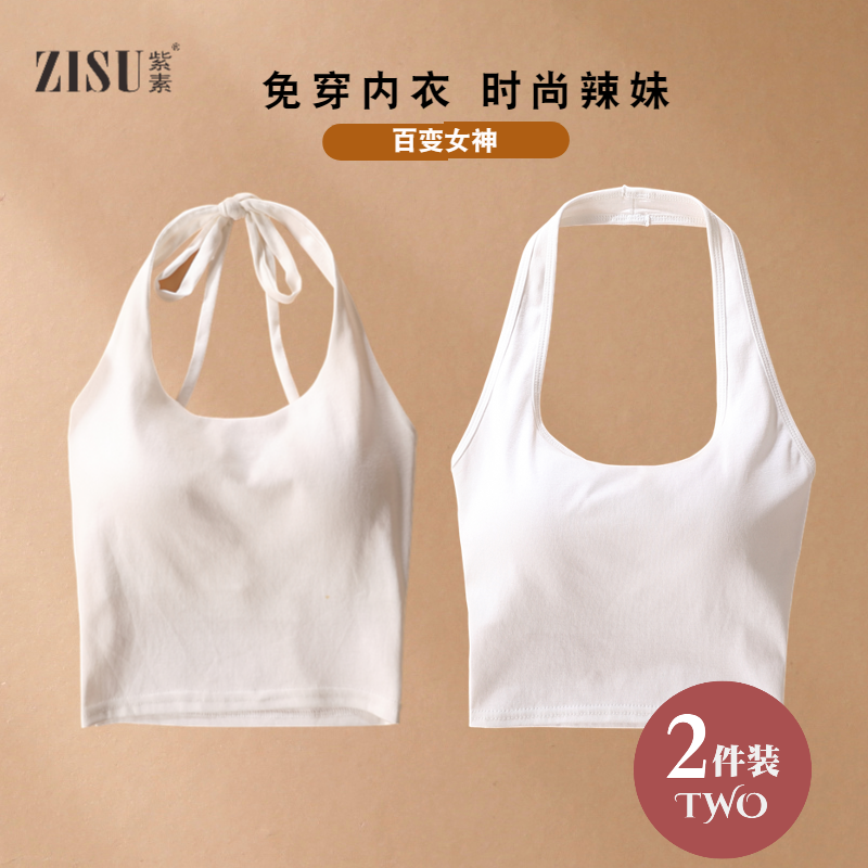 | nameOriginal | Pure cotton halterneck camisole for women with breast pads and short navel-baring bottoming bra for summer outerwear |