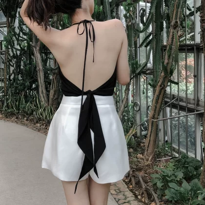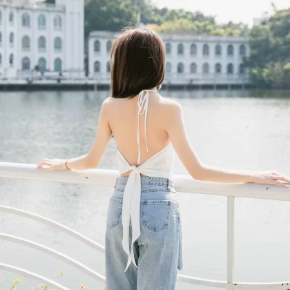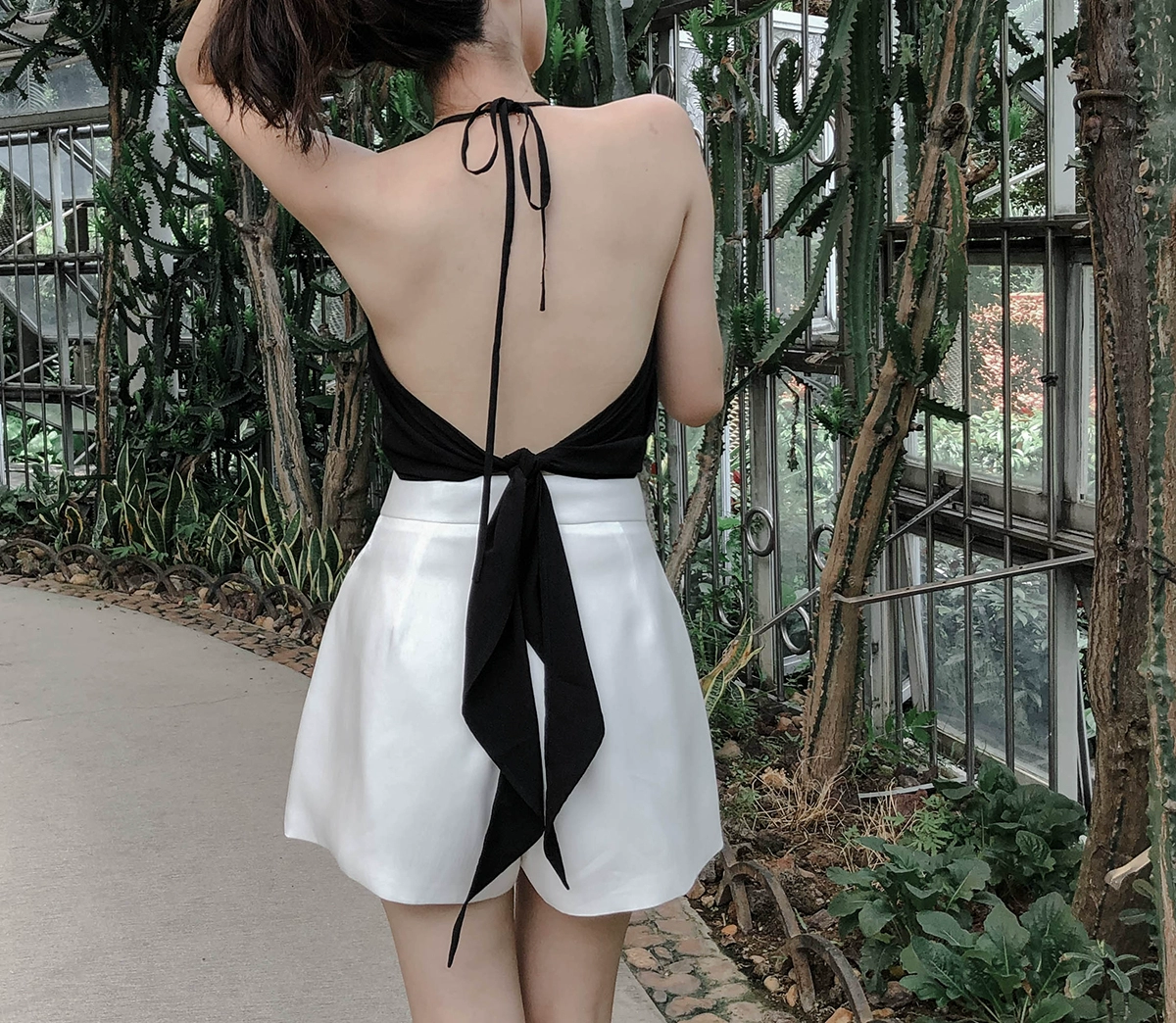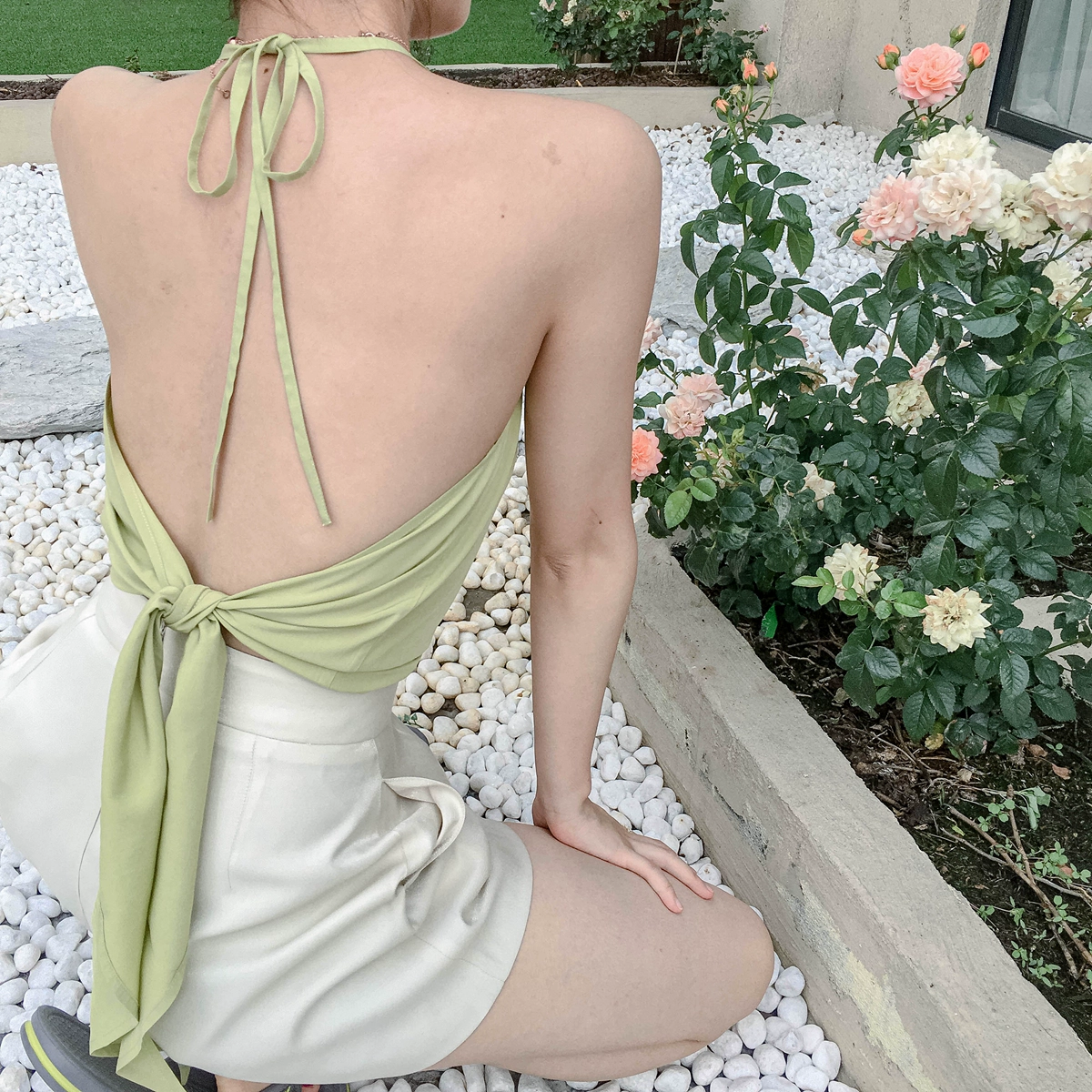 Pure cotton holiday sexy backless bellyband halter neck strap