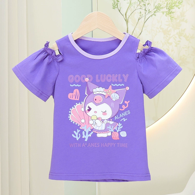 | nameOriginal | Pure Cotton Kuromi Short Sleeve Girls Off Shoulder Fashion T-Shirt |