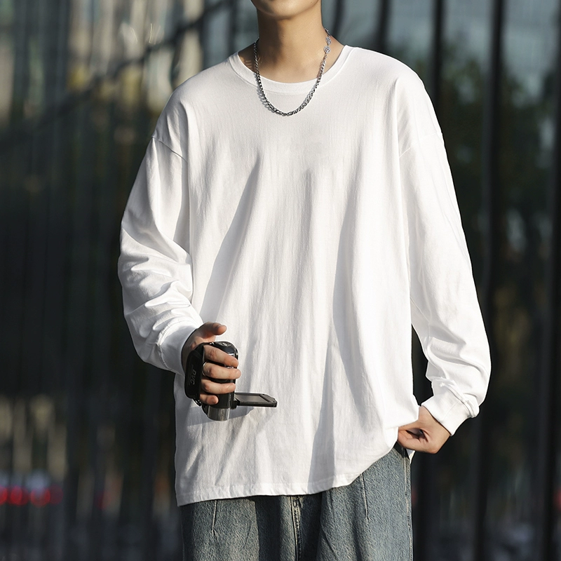 | nameOriginal | Pure cotton off-shoulder long-sleeved T-shirt men's spring and autumn round neck casual inner wear t-shirt trendy tops white bottoming shirt |