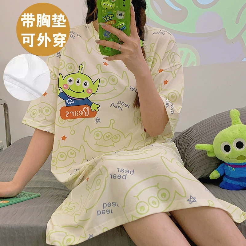 | nameOriginal | Pure cotton one-piece summer Korean style striped casual nightgown |