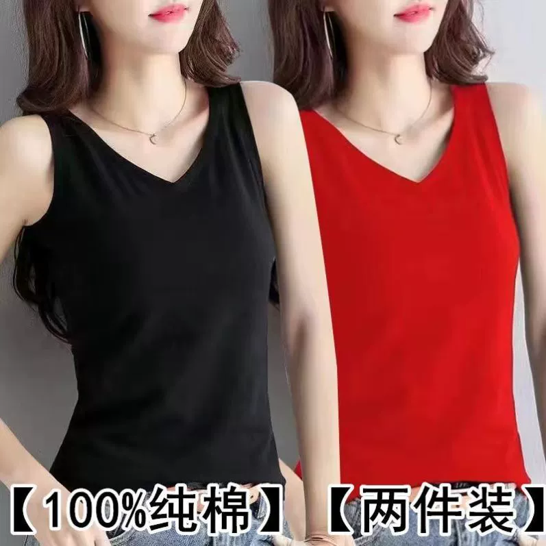 | nameOriginal | Pure cotton outer and inner loose V-neck sleeveless two-piece outfit |