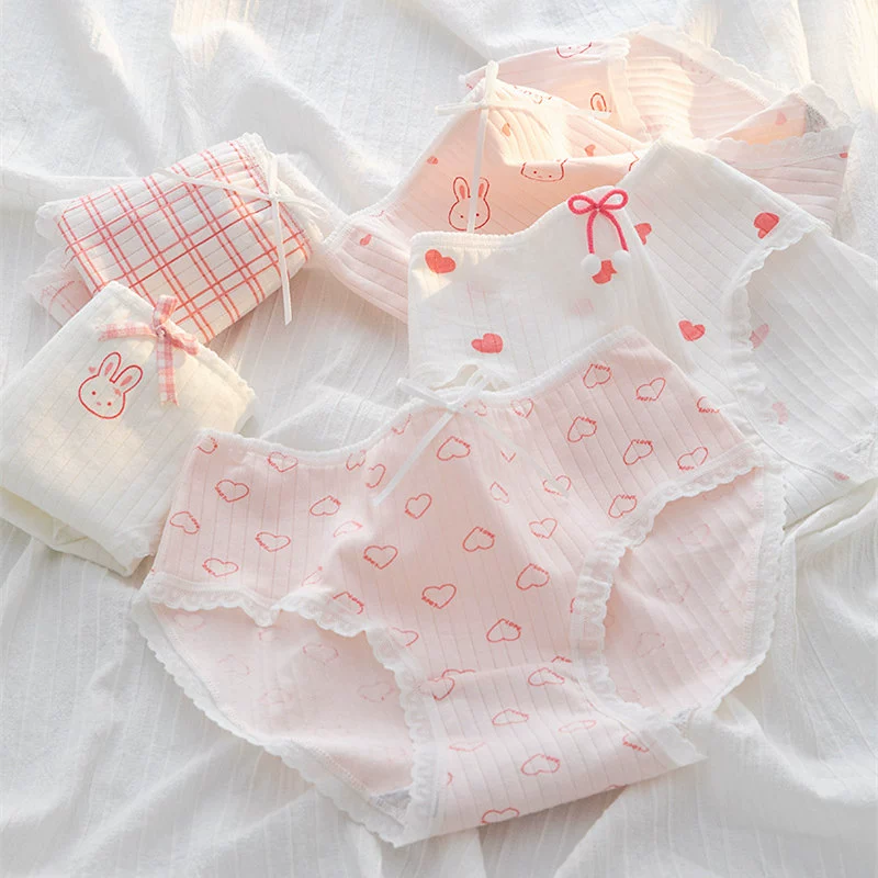 Pure cotton pink love cute rabbit student antibacterial crotch underwear