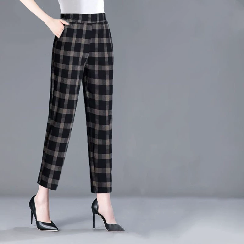 | nameOriginal | Pure cotton plus size summer harem straight plaid ninth pants |