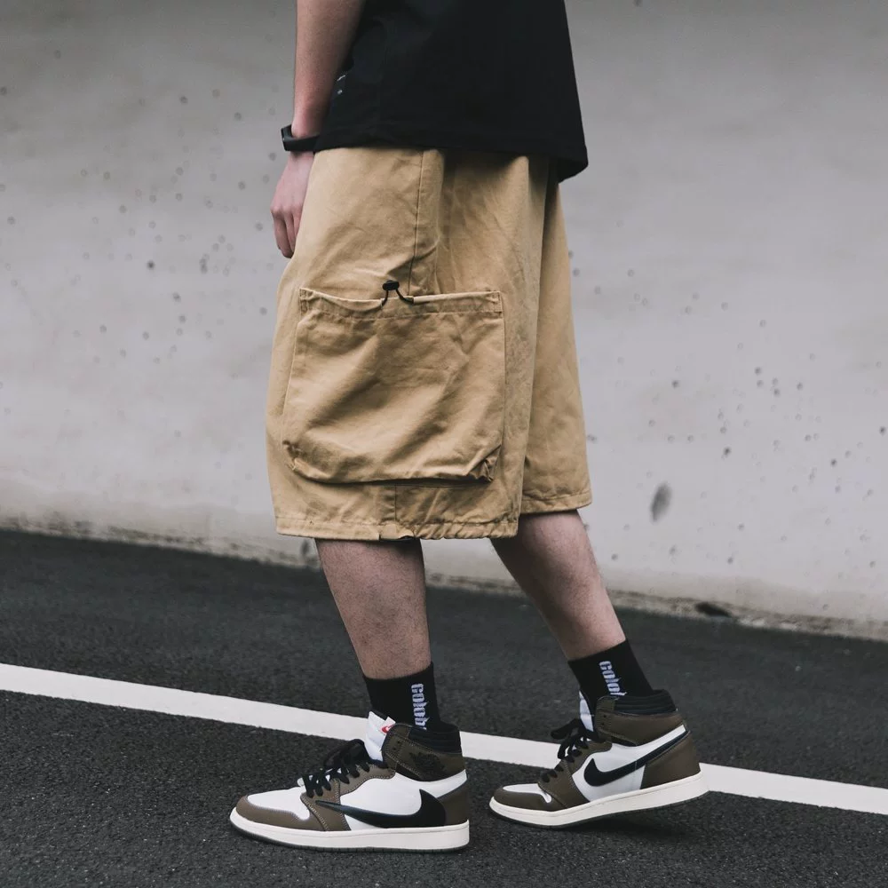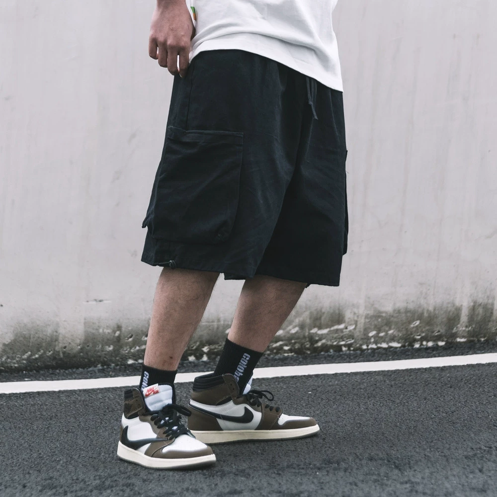 Pure cotton pocket tether casual wide-leg work shorts