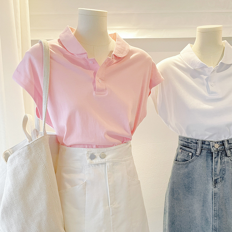 | nameOriginal | Pure Cotton POLO Collar Short-sleeved T-shirt Women's Summer Korean-style Slim-fit Slimming Western-style Age-reducing Flying Sleeve Trendy Top |