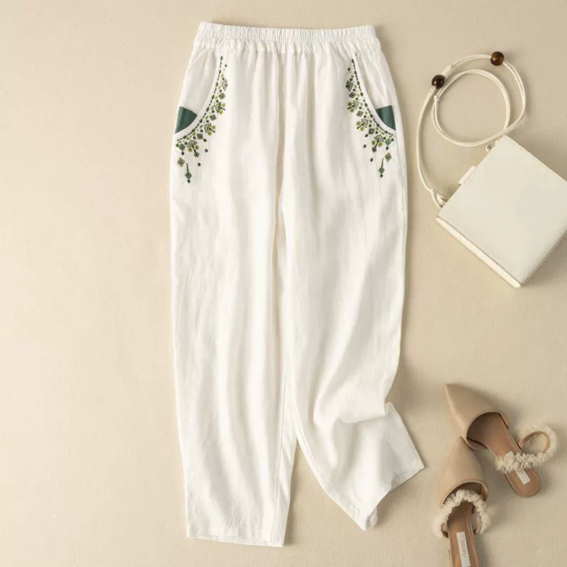 | nameOriginal | Pure cotton retro straight loose casual ninth pants with embroidery |