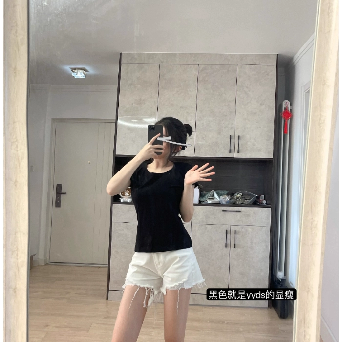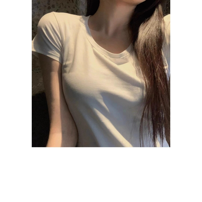 | nameOriginal | Pure cotton right shoulder bottoming T-shirt for women early spring and summer 2024 new slim fit yoga sports U-neck short-sleeved top |