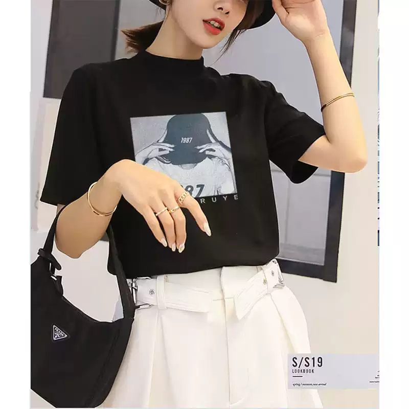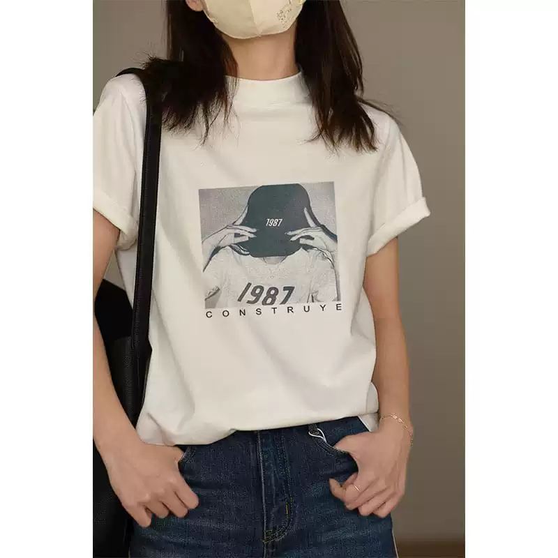 | nameOriginal | Pure cotton right shoulder fashionable design niche top short sleeves |