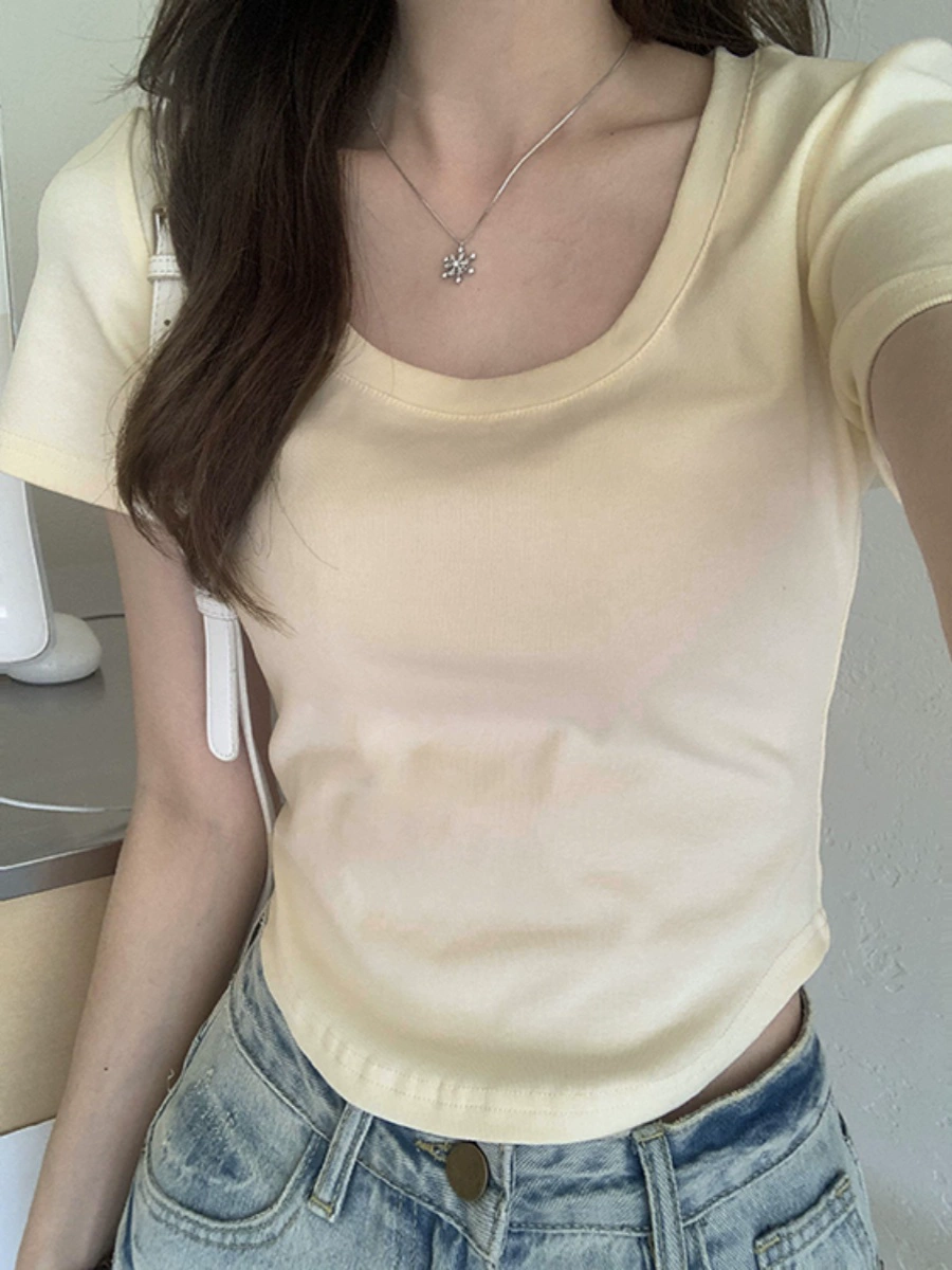 | nameOriginal | Pure cotton right shoulder summer slim fit top short sleeve t-shirt |