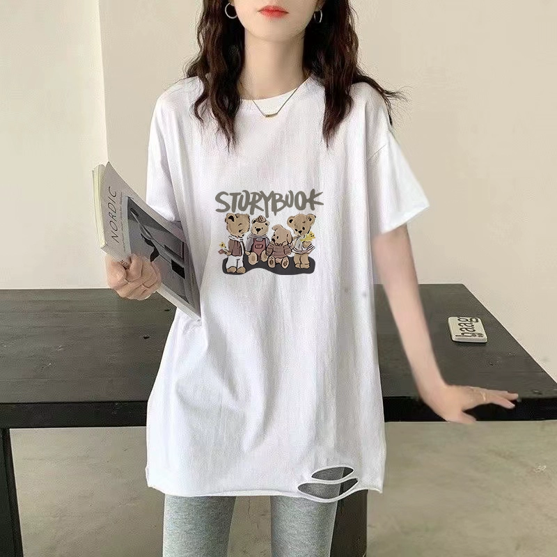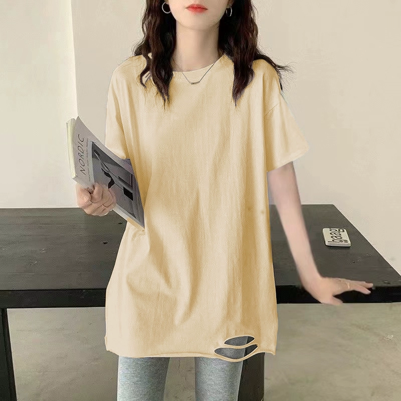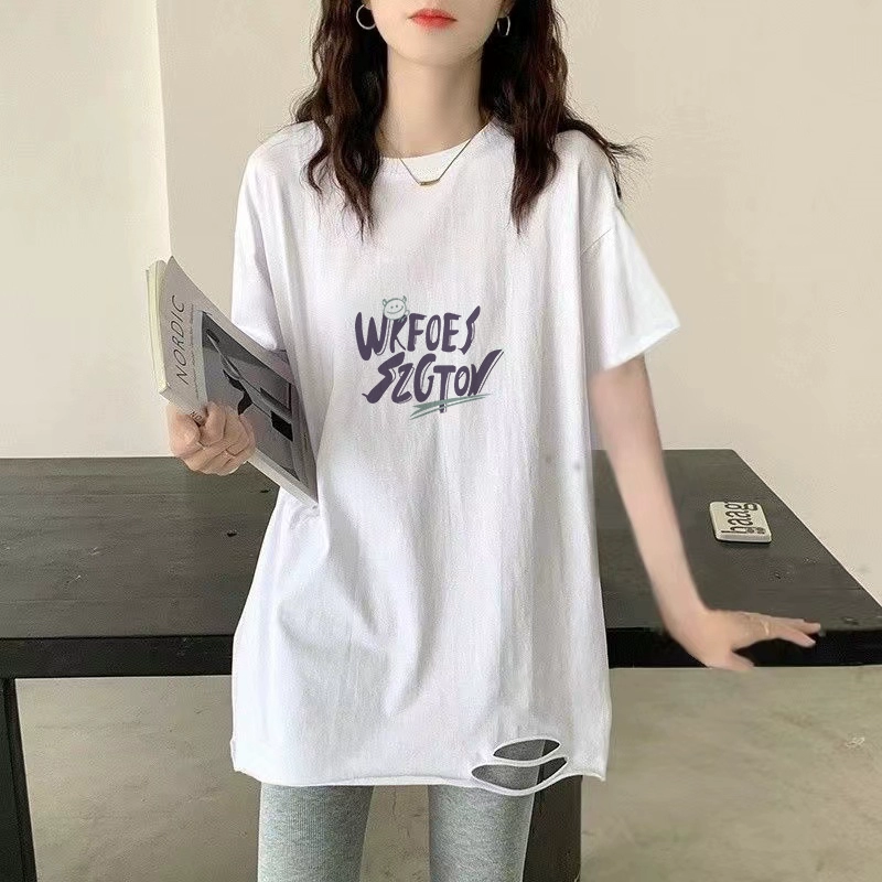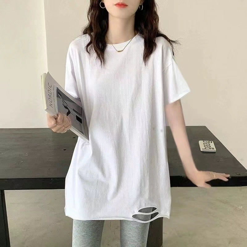 | nameOriginal | Pure cotton ripped white short-sleeved loose summer t-shirt |