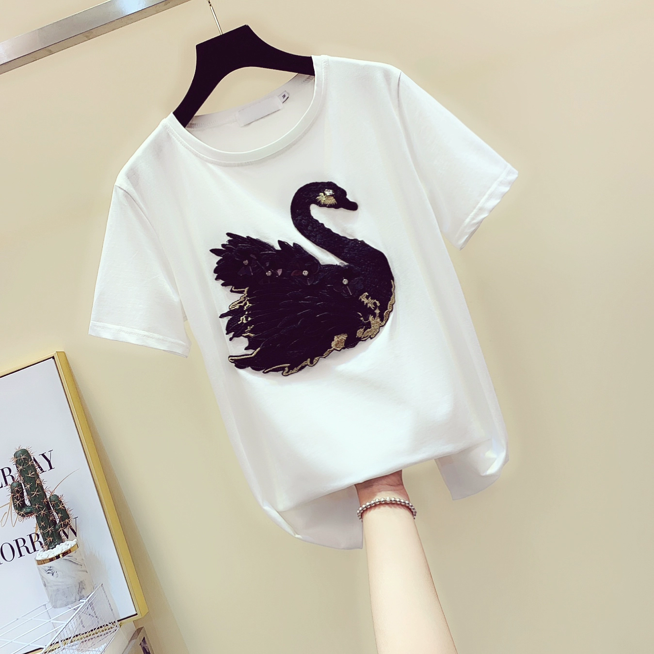 | nameOriginal | Pure cotton round neck short-sleeved versatile top with three-dimensional embroidery |