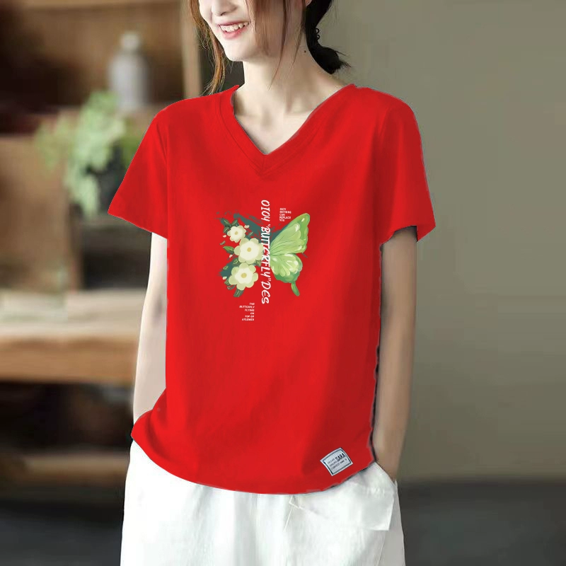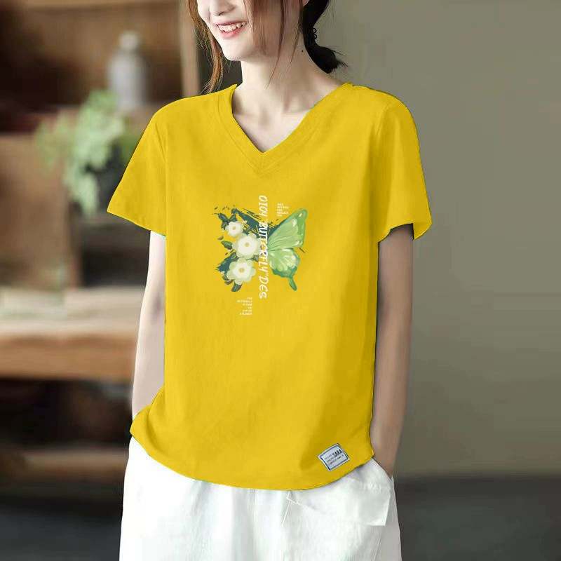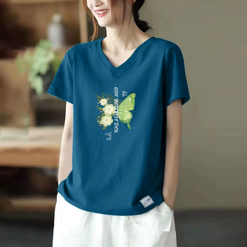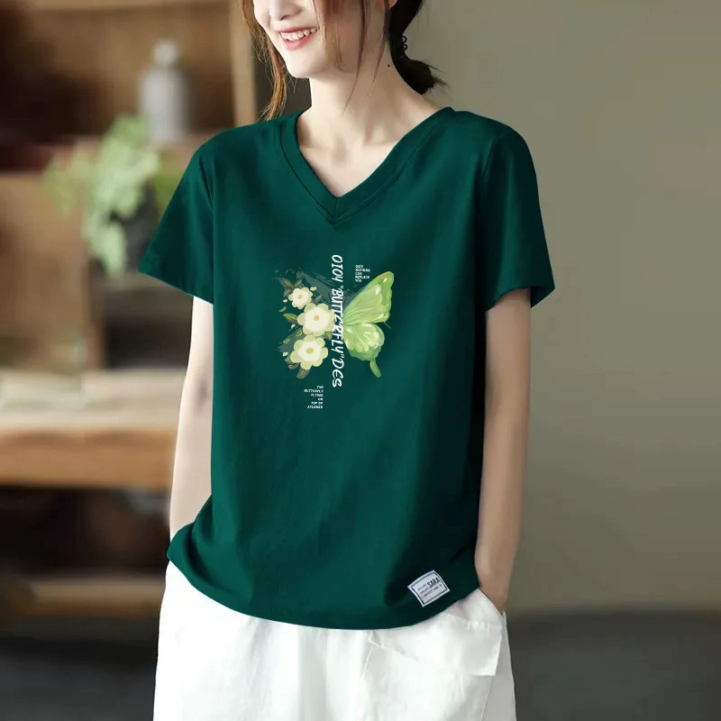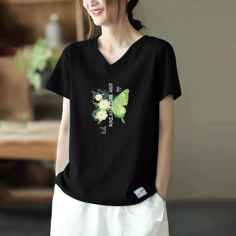 | nameOriginal | Pure cotton short-sleeved summer right shoulder V-neck loose slimming T-shirt |
