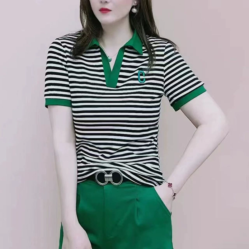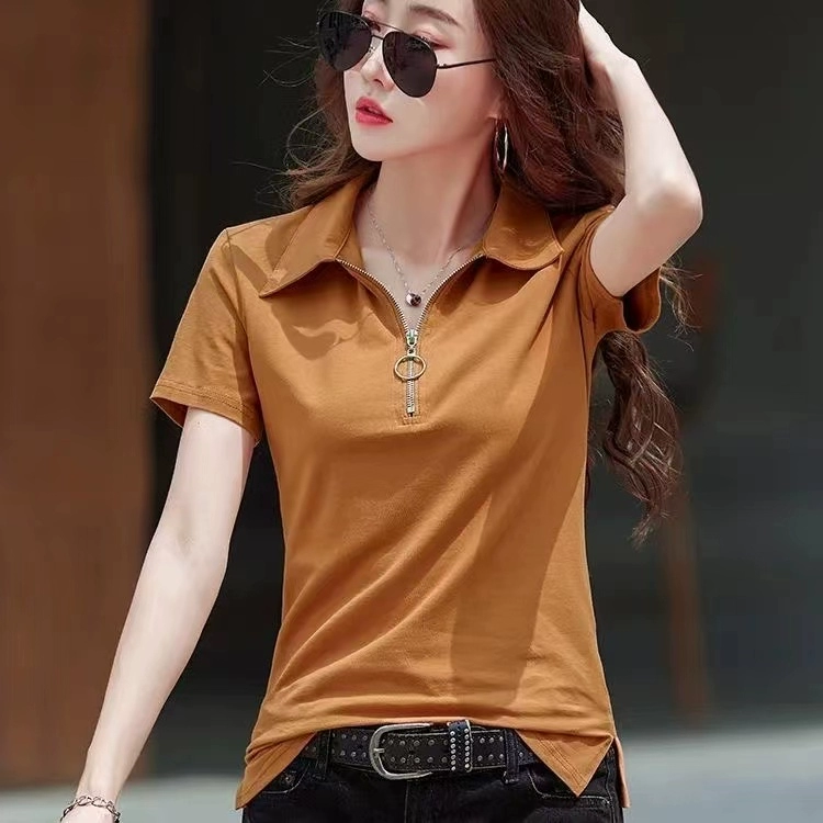 | nameOriginal | Pure cotton short-sleeved t-shirt for women 2024 new summer loose fashionable lapel polo shirt temperament foreign style shirt top |