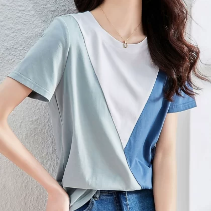 | nameOriginal | Pure cotton short-sleeved T-shirt for women 2024 new summer style versatile stitching contrasting color loose slimming design niche top |