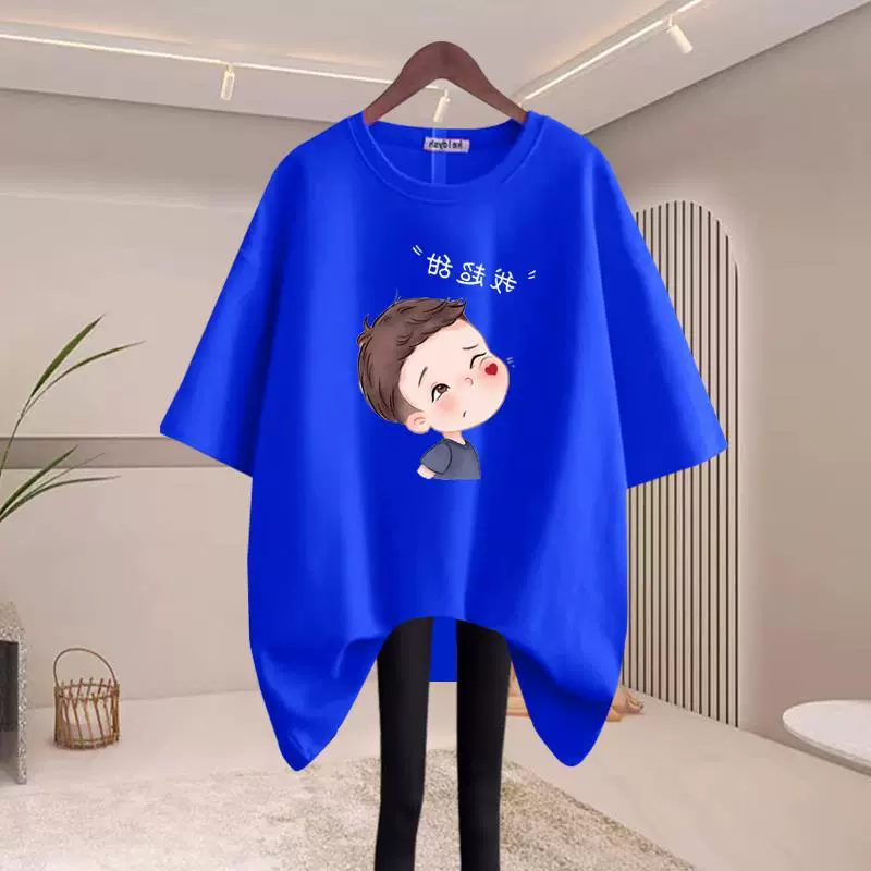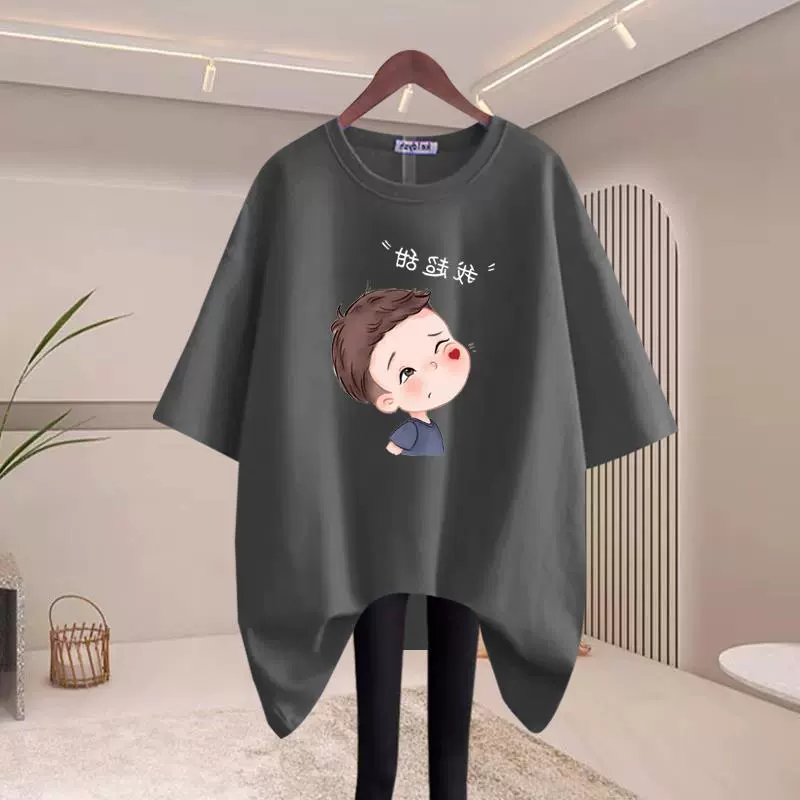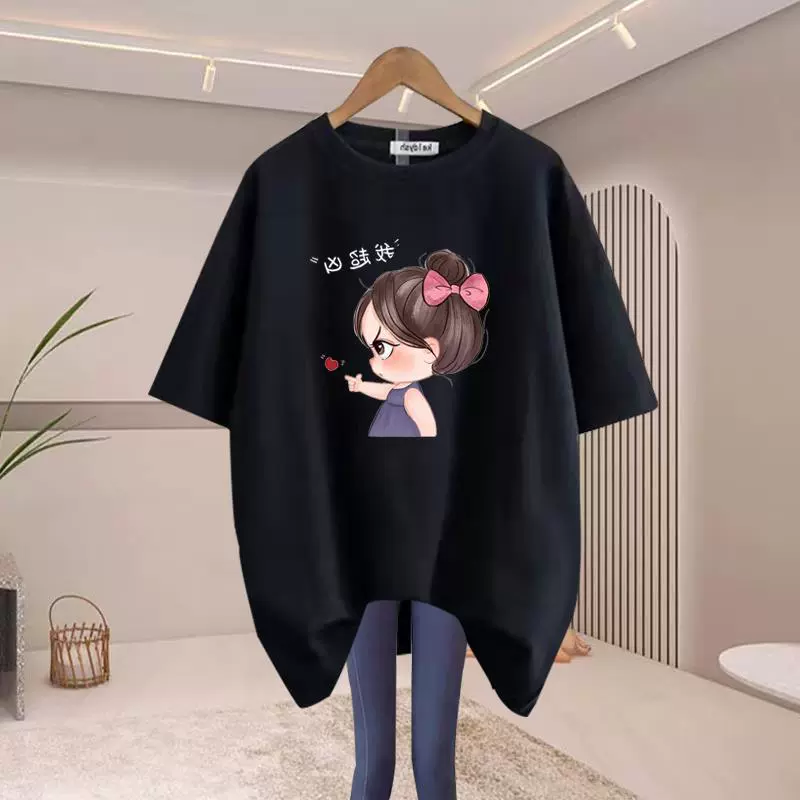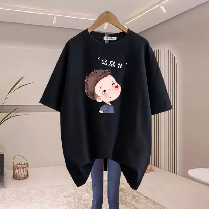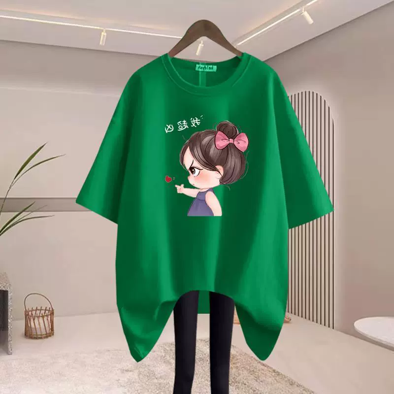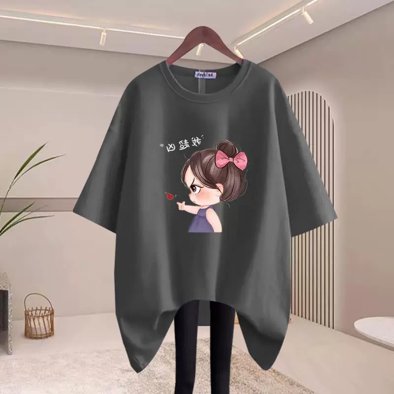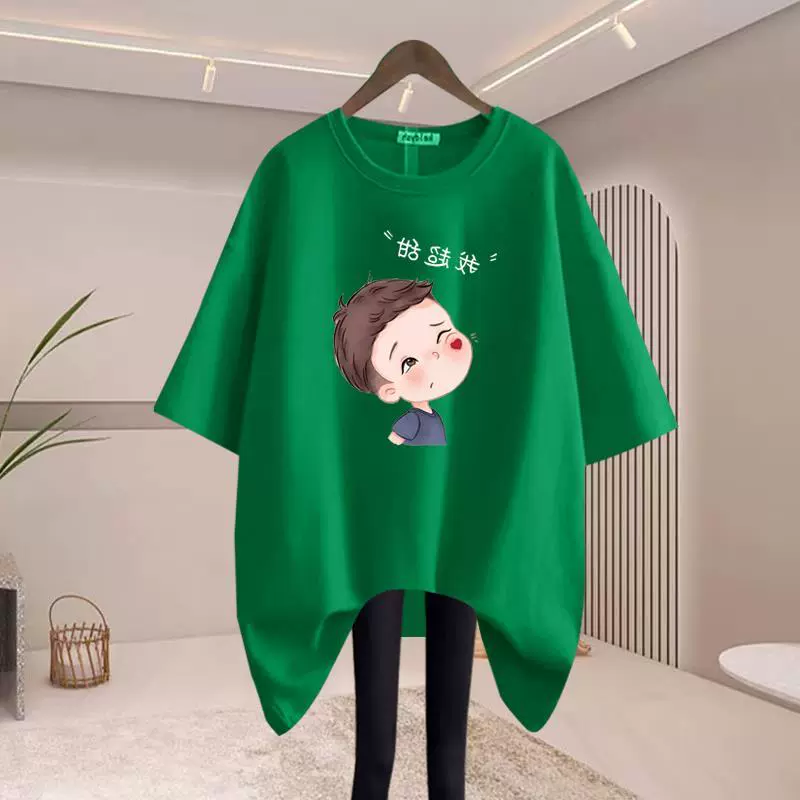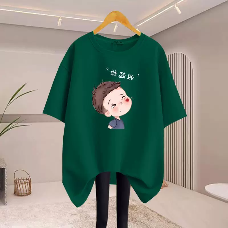 | nameOriginal | Pure cotton short-sleeved T-shirt for women fat mm plus size 300 pounds Japanese soft girl loose mid-length butt-covering half-sleeved T-shirt top |