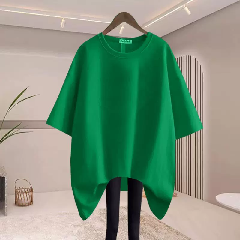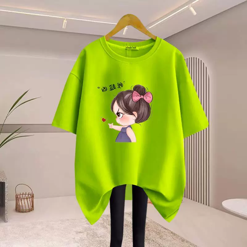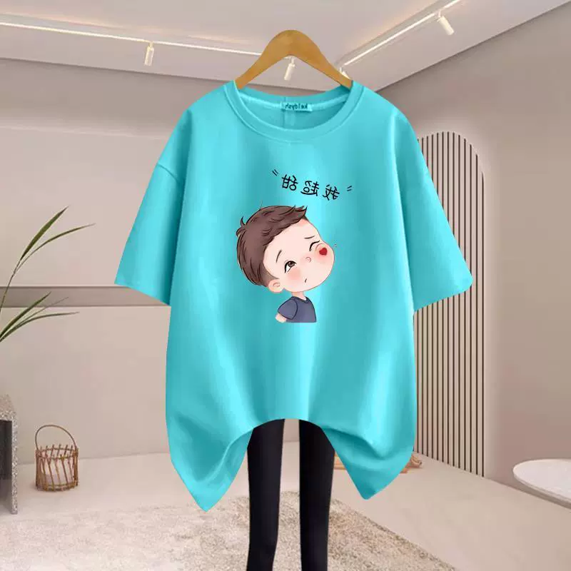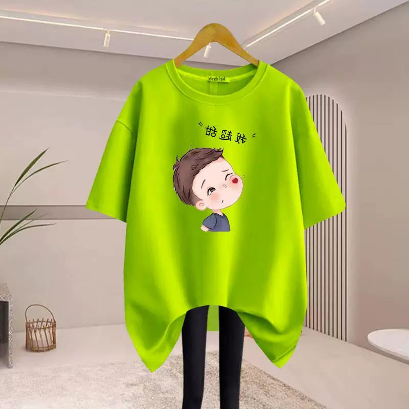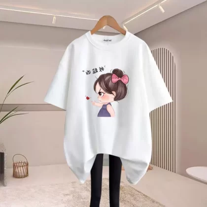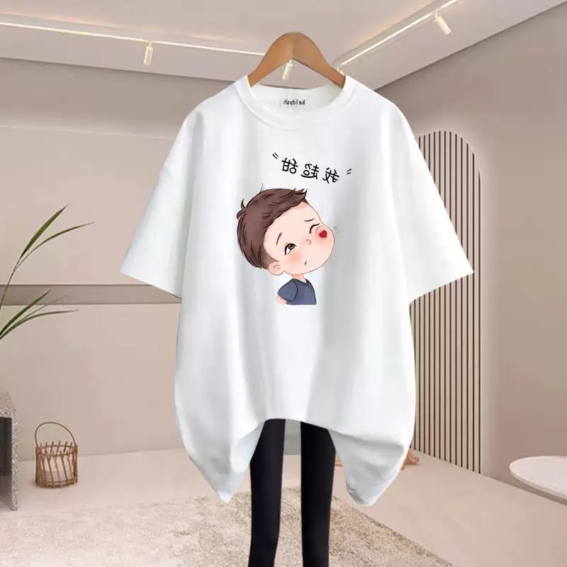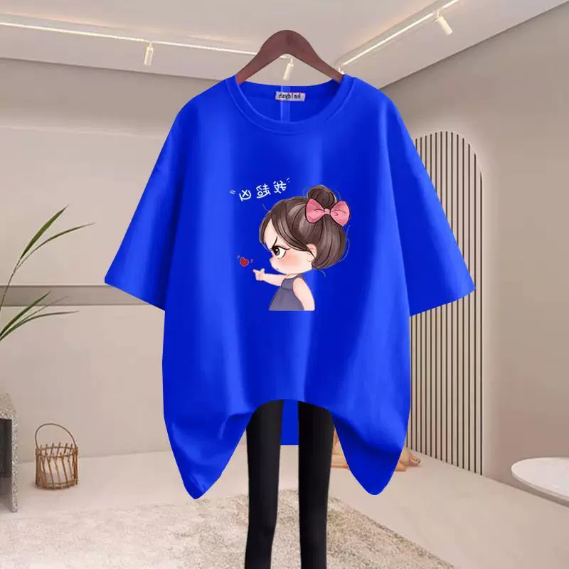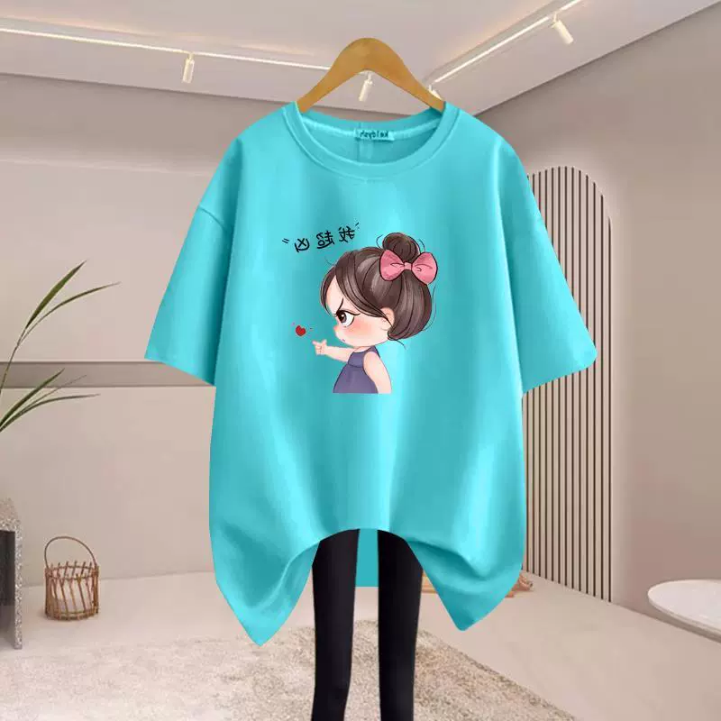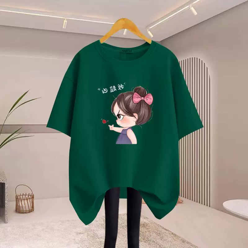 | nameOriginal | Pure cotton short-sleeved T-shirt for women fat mm plus size 300 pounds Japanese soft girl loose mid-length butt-covering half-sleeved T-shirt top |