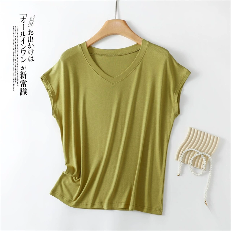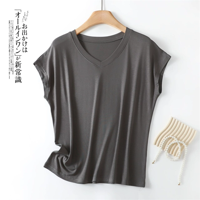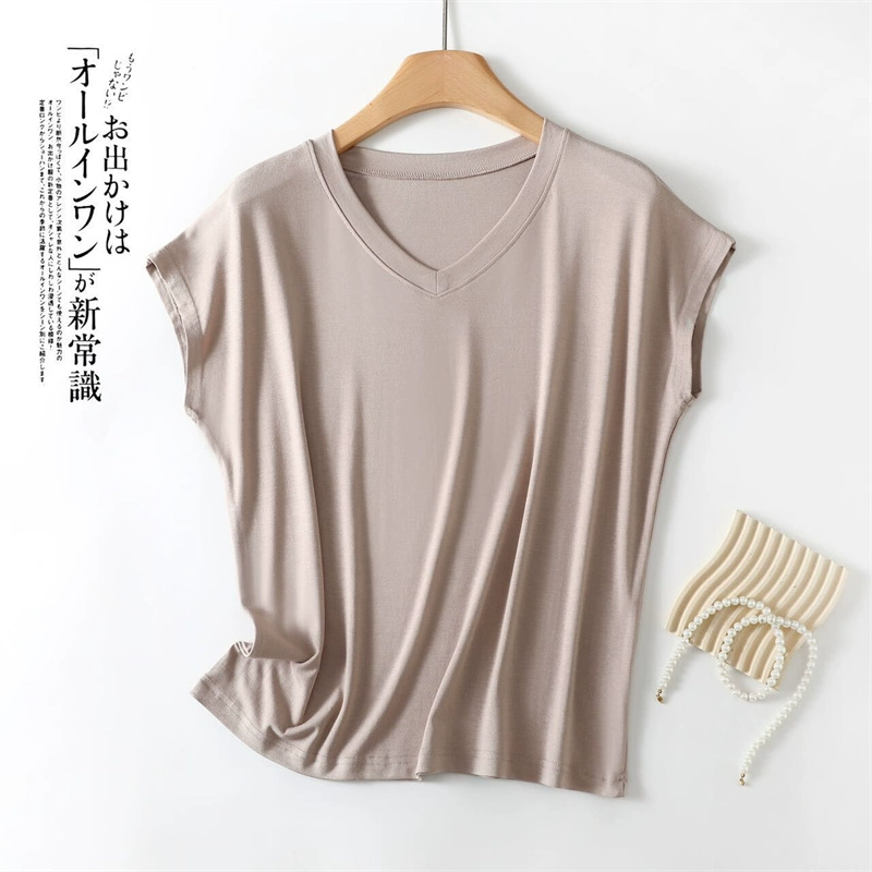 | nameOriginal | Pure cotton short-sleeved T-shirt for women in summer v-neck slimming top thin half-sleeved outer wear foreign style versatile bottoming shirt |