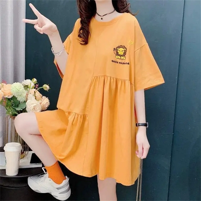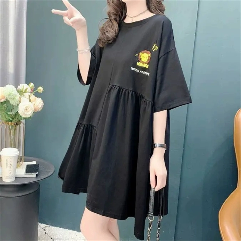 | nameOriginal | Pure cotton short-sleeved T-shirt women's mid-length summer new style loose western style niche European fat mm t-shirt dress |