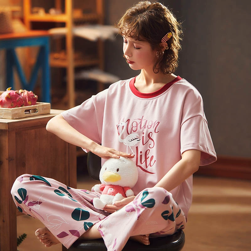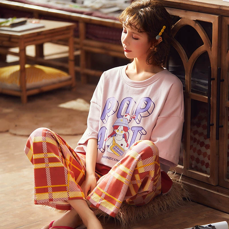 | nameOriginal | Pure cotton short-sleeved trousers summer female students spring and autumn pajamas |