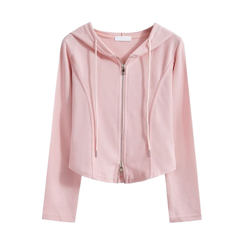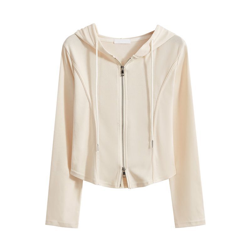 Pure Cotton Short Sweater Spring and Summer Thin Niche Cardigan Top Slim-fit Slimming Hooded Spring and Autumn Zipper Jacket