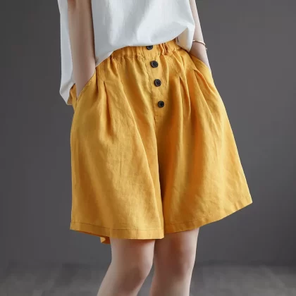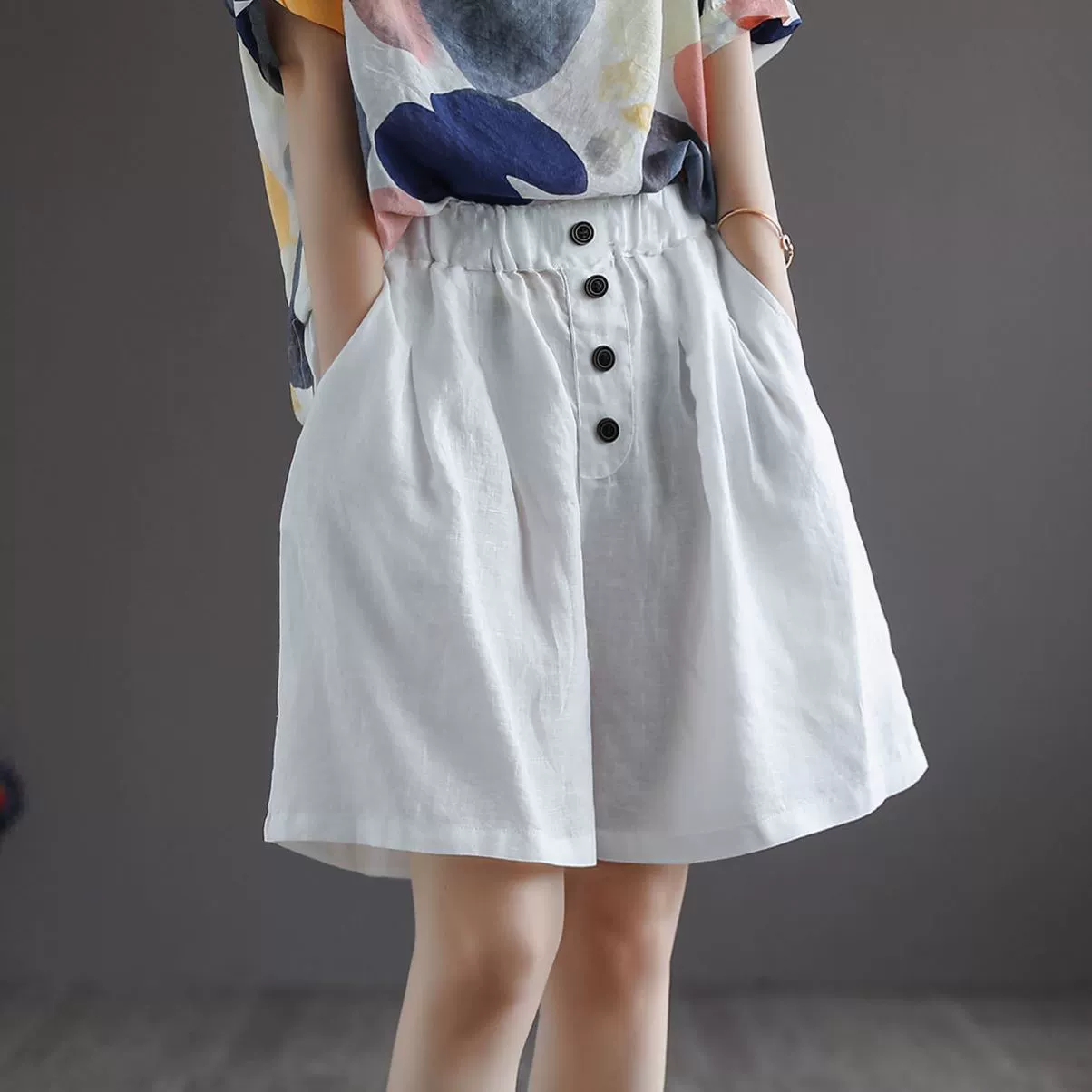 | nameOriginal | Pure cotton shorts for women 2023 summer new thin loose artistic button cotton and linen wide-leg pants casual five-point pants |
