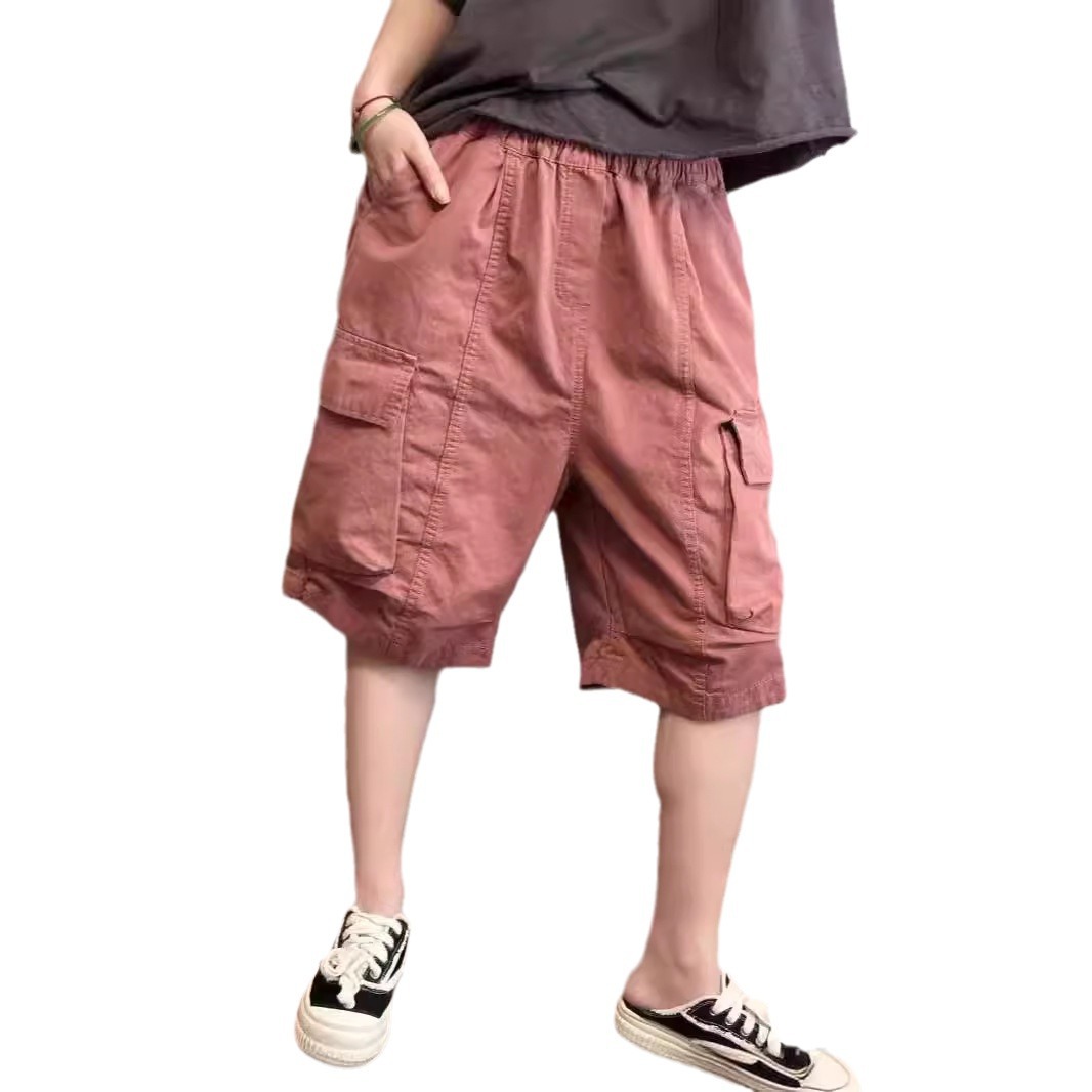 | nameOriginal | Pure Cotton Shorts Women's 2024 Summer New Solid Color Patchwork Pocket High Waist Loose Six-point Pants for Women |