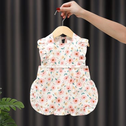 Pure Cotton Sleeveless Baby Girl’s Cover Summer Waterproof and Dirty-proof Children’s Cover Baby Dining Bib Kindergarten’s Cover