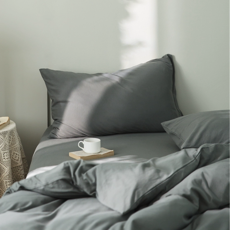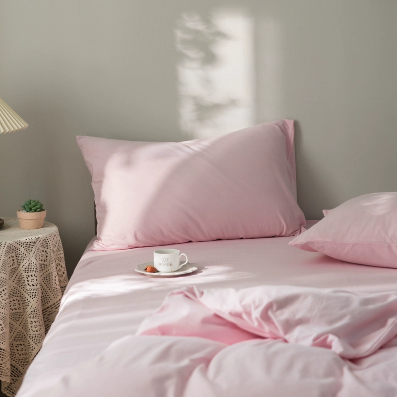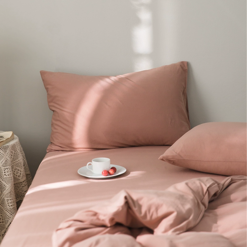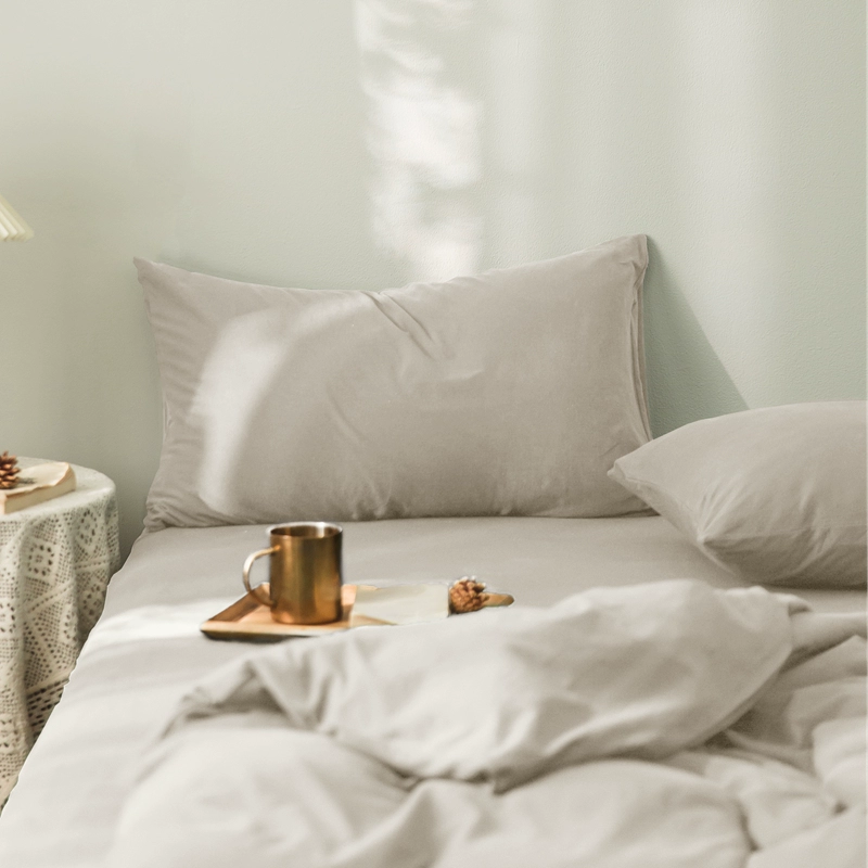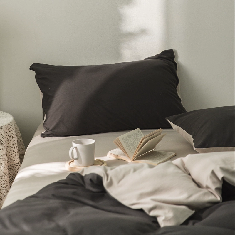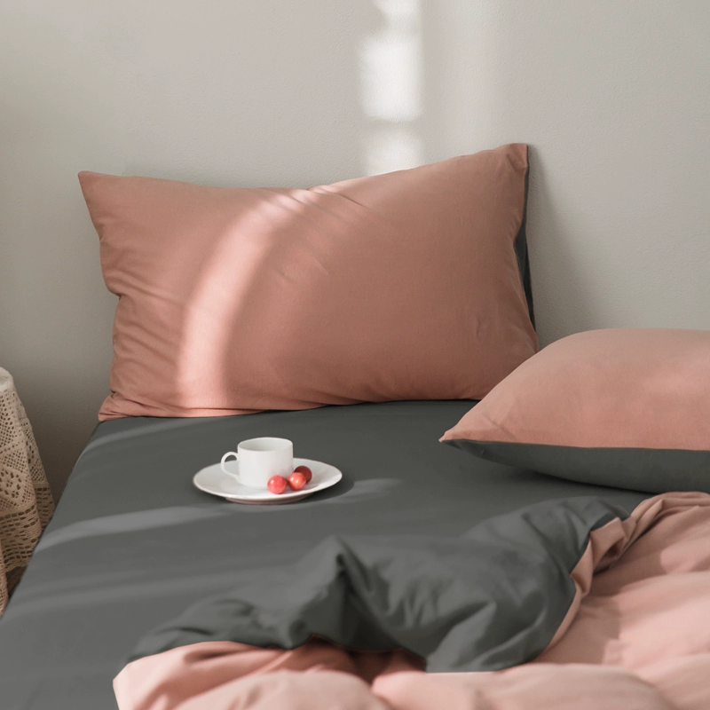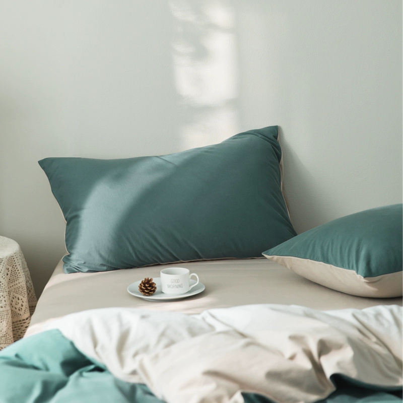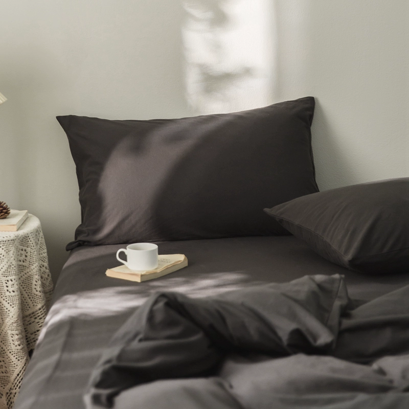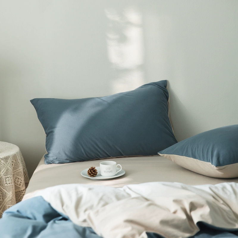 Pure cotton solid color double knitted cotton single pillowcase Tianzhu cotton pure cotton pillowcase single 48*74 pair set shot 2