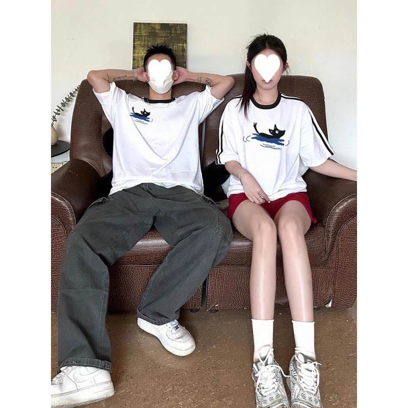 [Pure Cotton] Special Disoo Couple 2024 New Summer T-Shirt Short Sleeve Small Public Internet Red High-end Sense Three