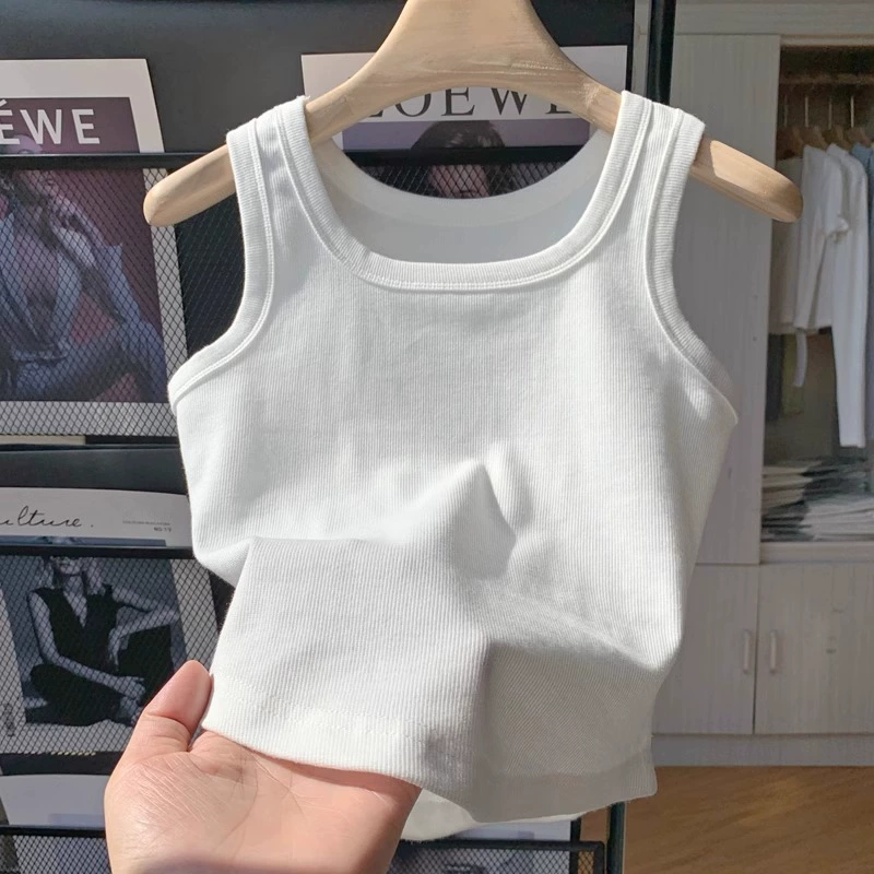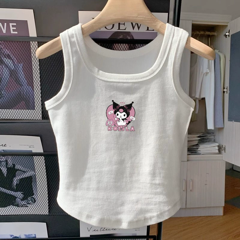 Pure cotton square neck vest girls’ summer new fashion style children’s baby sleeveless cartoon strawberry bear top wear outside