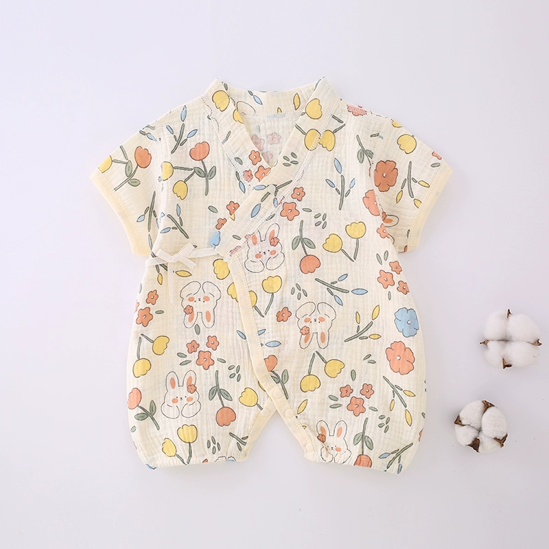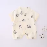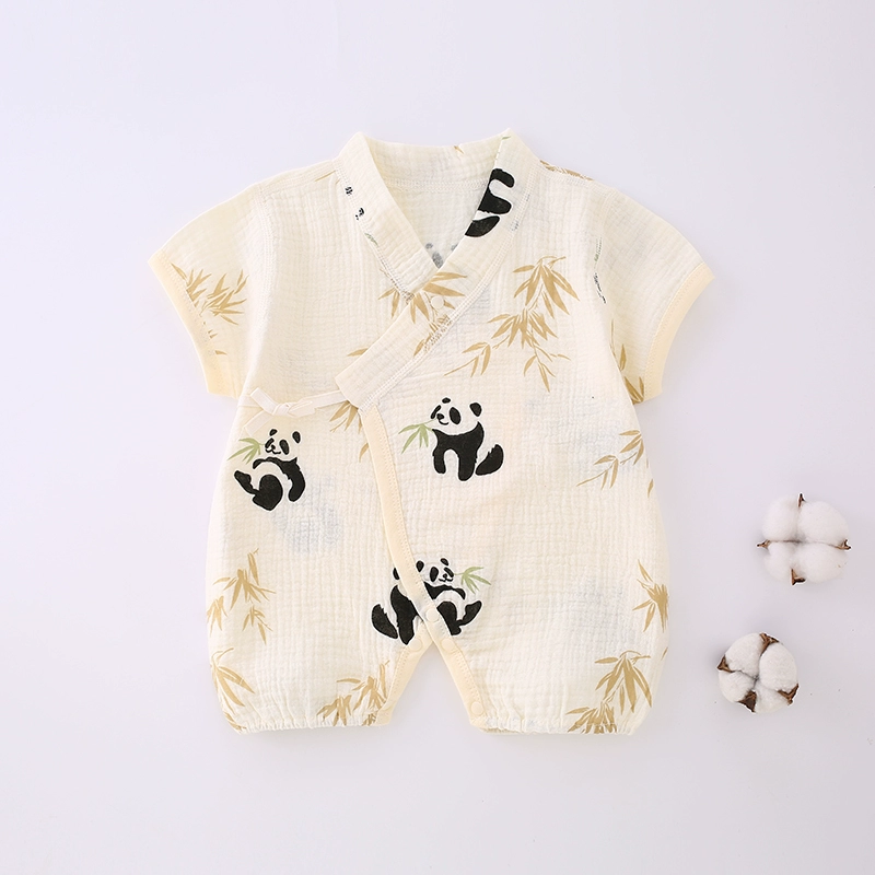 Pure cotton summer lace-up monk suit short-sleeved panda khaki