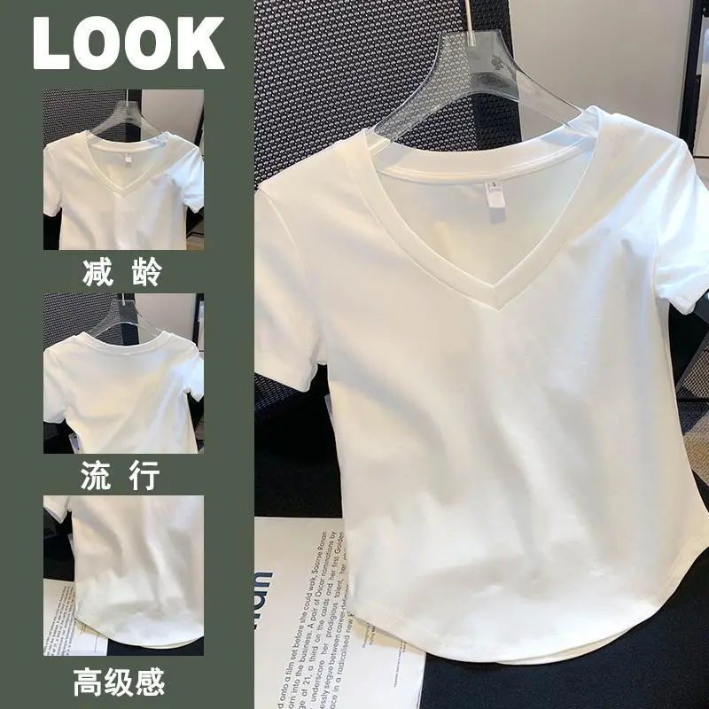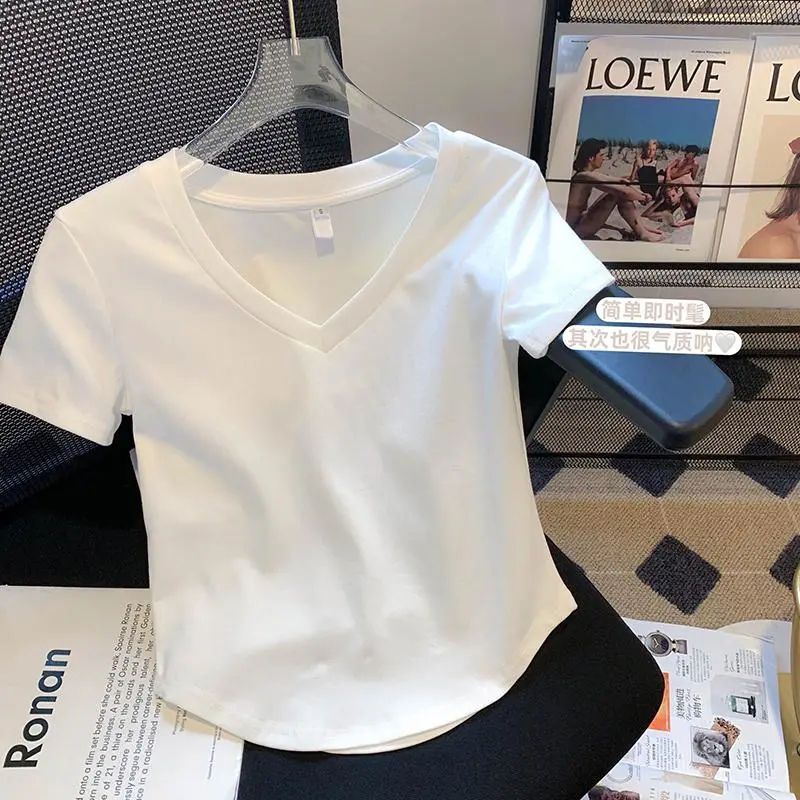 Pure Cotton Summer New Irregular Collar Short-sleeved Shirt Women's Shoulder T-shirt White Small Shirt Short Top Trendy