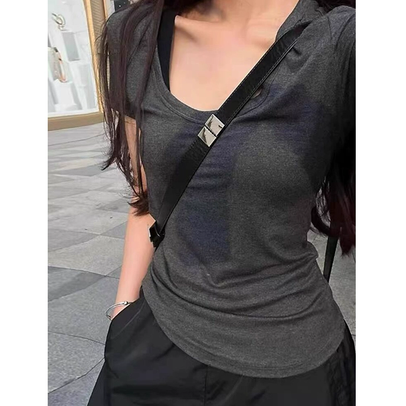 Pure cotton sweet hot girl summer exposed collarbone short-sleeved T-shirt