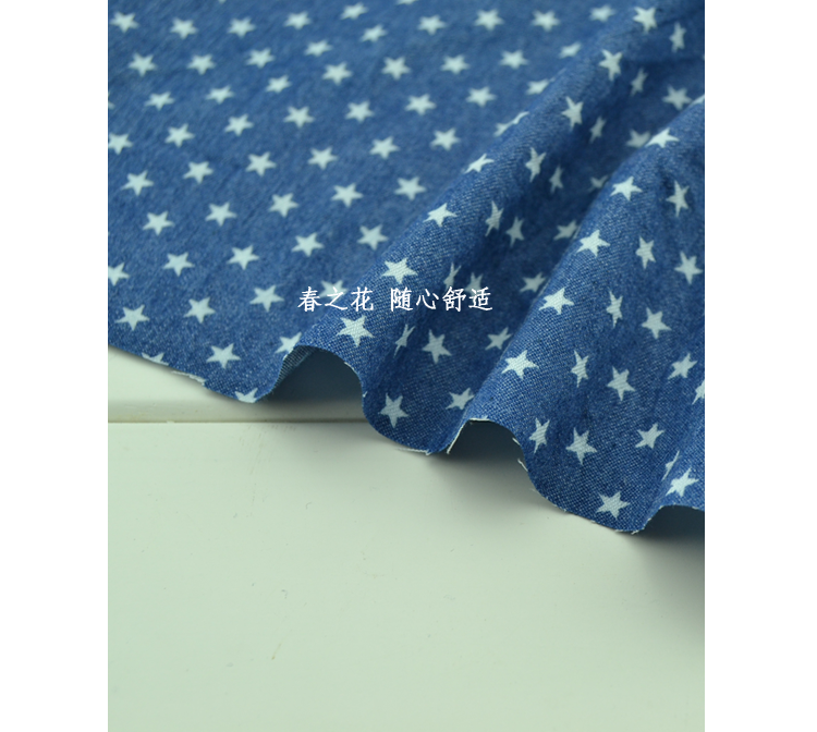 | nameOriginal | Pure cotton thin denim fabric washed nostalgic style star polka dot youth cloth baby clothes and pants handmade fabric |