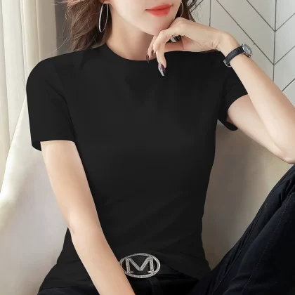 | nameOriginal | Pure cotton thin green slim turtleneck short-sleeved T-shirt |