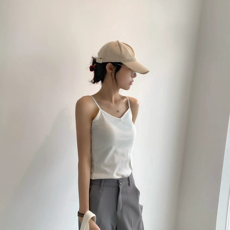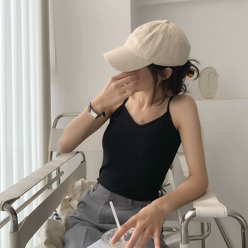 Pure cotton thread women’s summer V-neck slim backless spaghetti straps